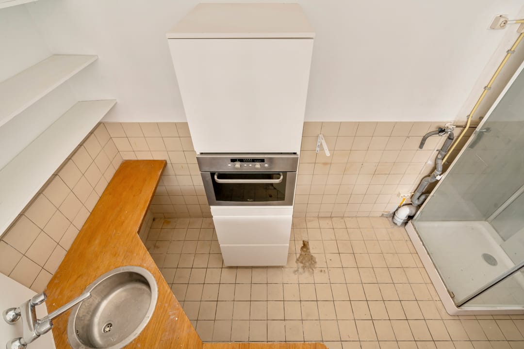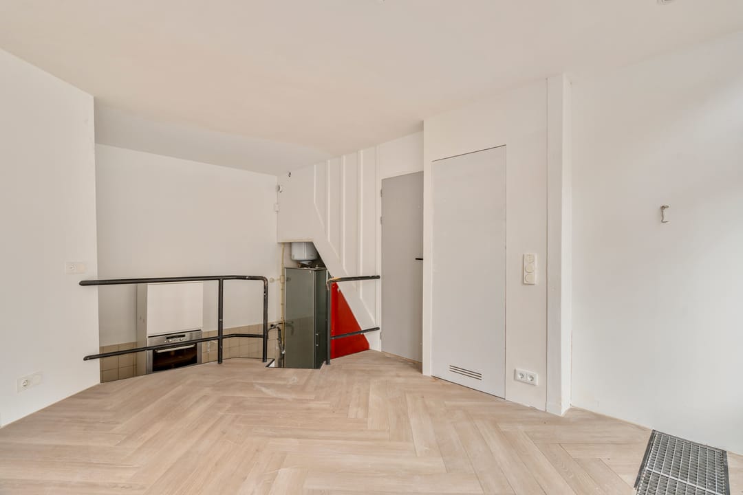 The ground floor features an attractive herringbone floor and offers an open-plan layout that is well suited for various uses, such as an office, studio or atelier. The open design allows for flexible furnishing options and creates a spacious feel.