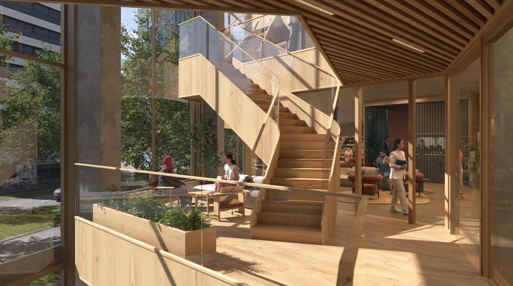 As part of The Harmony, tenants benefit from a carefully curated plinth with amenities such as food & beverage concepts, retail, a supermarket and shared facilities. The development is designed as a “5-minute city”, where daily needs are always close by, encouraging a healthy and balanced work environment.