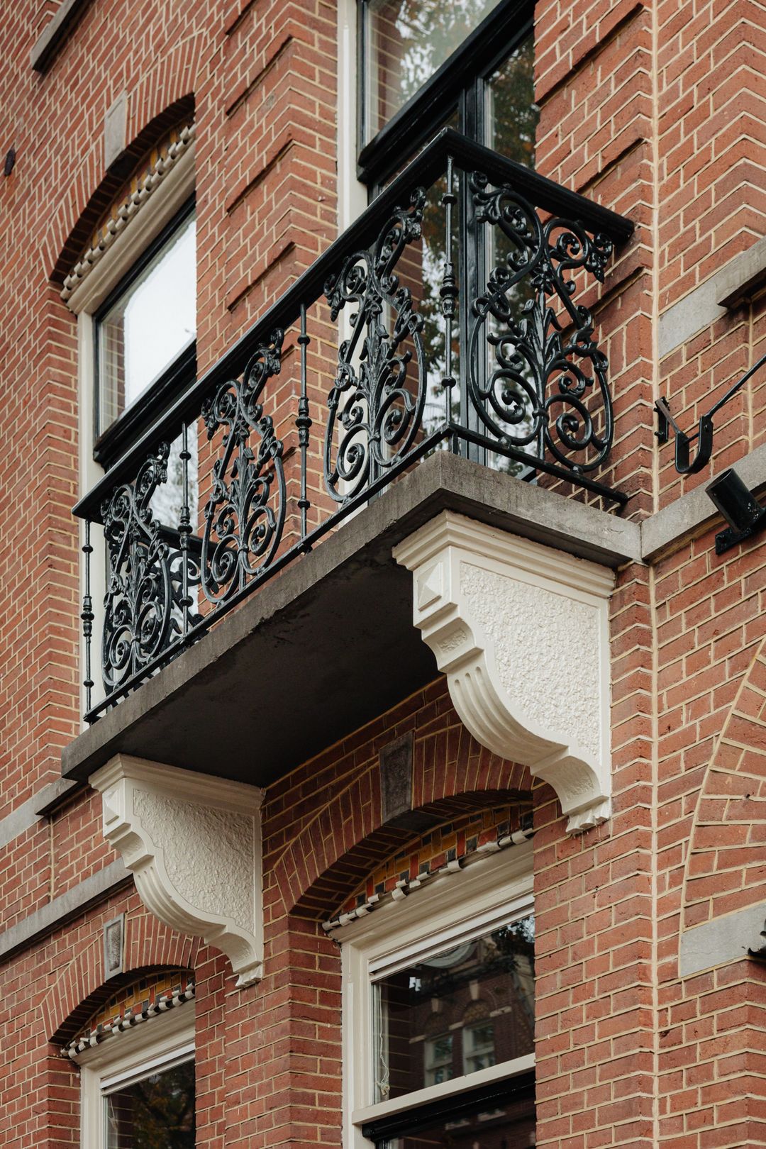 Het gebouw betreft een karakteristiek herenhuis. De gevel is uitgevoerd in klassieke Amsterdamse bouwstijl met rood metselwerk, sierlijke natuurstenen details en hoge raampartijen die het gebouw een elegante uitstraling geven. De bel-etage wordt bereikt via een imposante entree, passend bij de authentieke architectuur van het pand. Op de verdiepingen zijn Franse balkons met verfijnd smeedijzeren hekwerken welke bijdragen aan de charme van het gebouw.