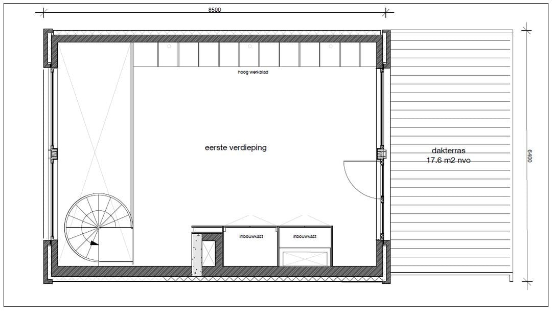 Tevens is er een ruim dakterras aanwezig bij deze ruimte. Het dakterras biedt een praktische buitenruimte die het gebruikscomfort van de kantoorruimte vergroot.