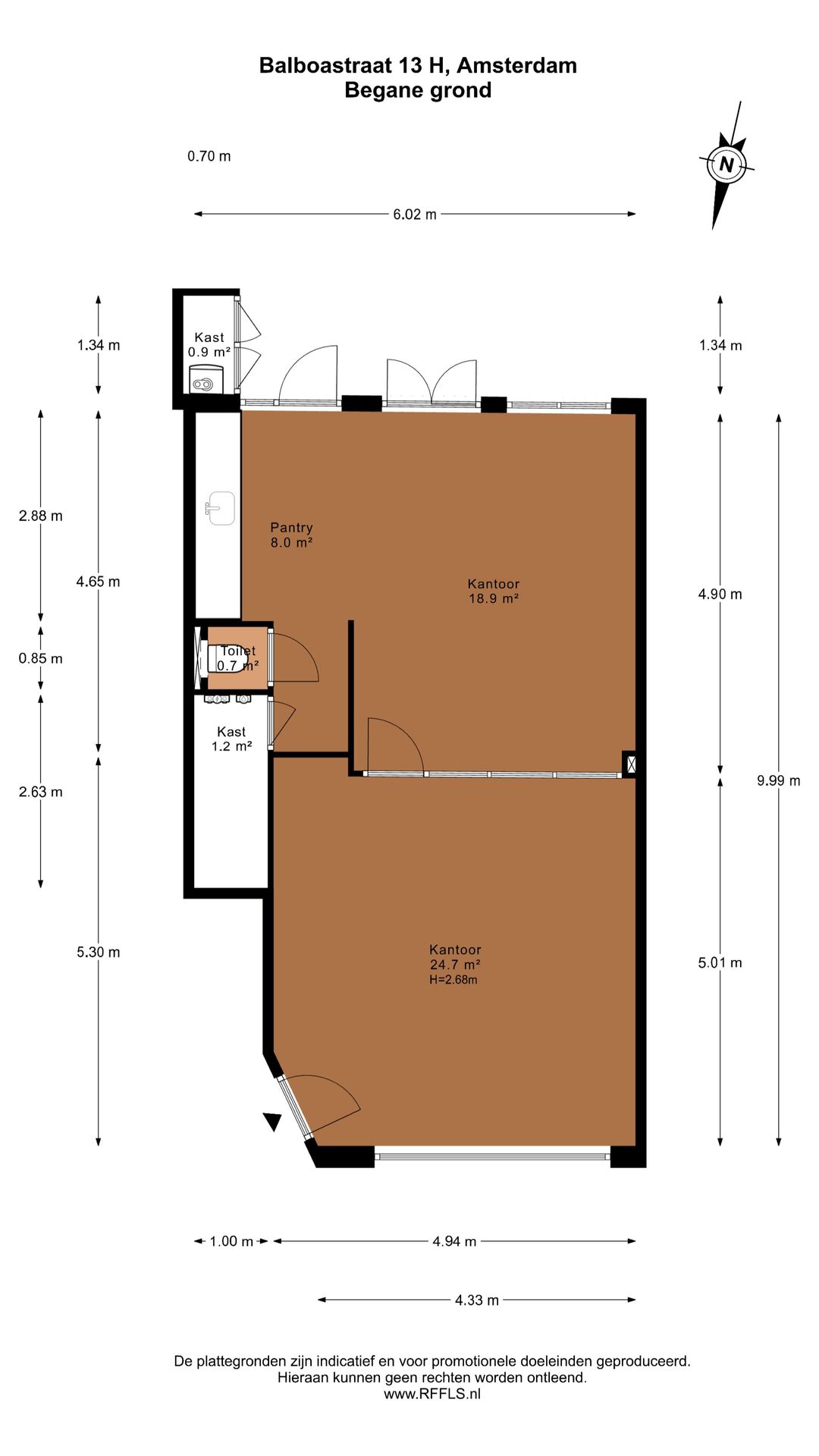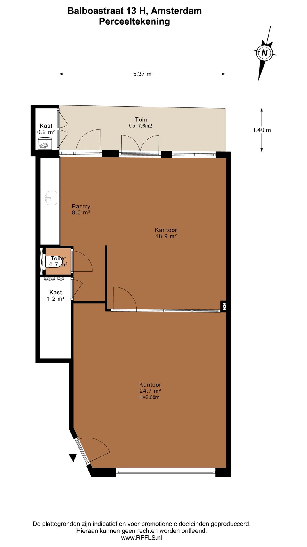De entree aan de straatzijde geeft toegang tot een open en lichte ruimte die flexibel is in te delen. Dankzij de recente renovatie is het geheel direct te gebruiken. De moderne keuken, uitgerust met hoogwaardige inbouwapparatuur, maakt de ruimte ook geschikt voor functies waarbij representativiteit en comfort belangrijk zijn. Verder is er een separaat toilet en bergruimte aanwezig.