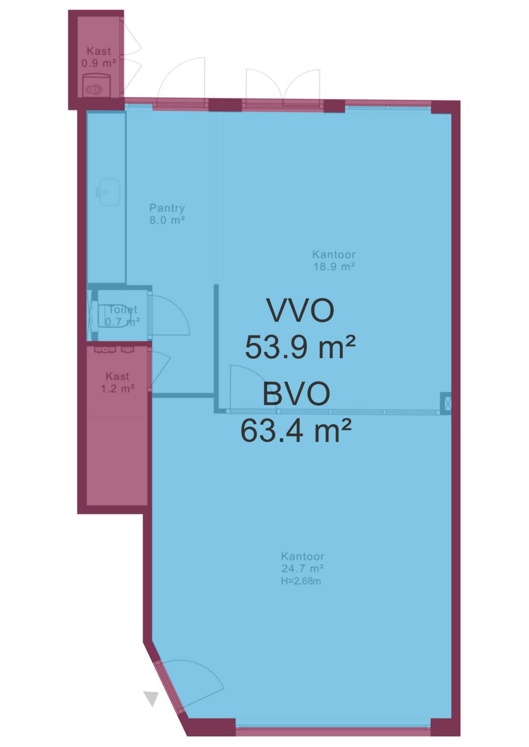 - Circa 63 m² BVO