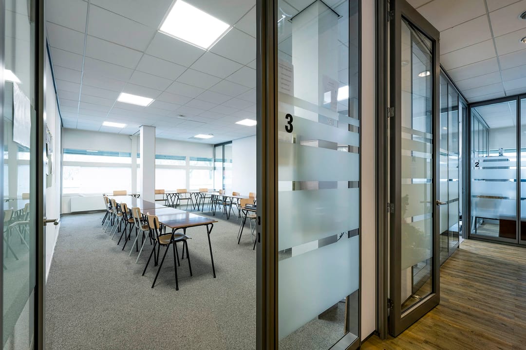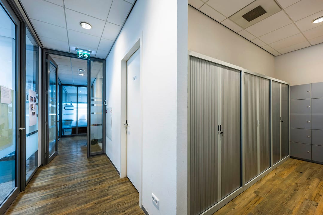 - Huidige indeling middels glazen tussenwanden;