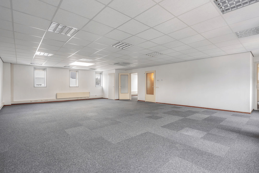 De ruimte is efficiënt ingedeeld en beschikt over een afgesloten spreekkamer, een open kantoortuin, pantry, toiletgroep met twee toiletten en een voorportaal. Dankzij de ligging op de bovenste verdieping geniet de ruimte van veel daglicht en een prettige werkomgeving.