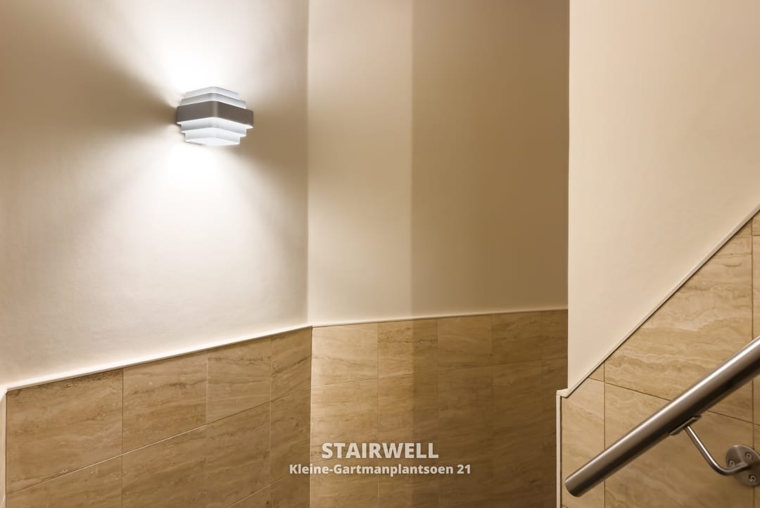 The interior has been designed with a keen eye for light and transparency. Thanks to its prime corner position, featuring large windows on both the East and South sides, the entire floor is flooded with natural light throughout the day. This creates an energetic and pleasant atmosphere.