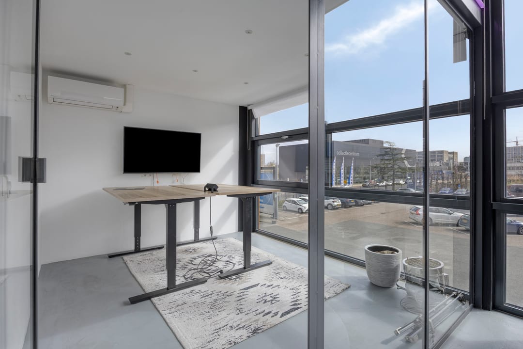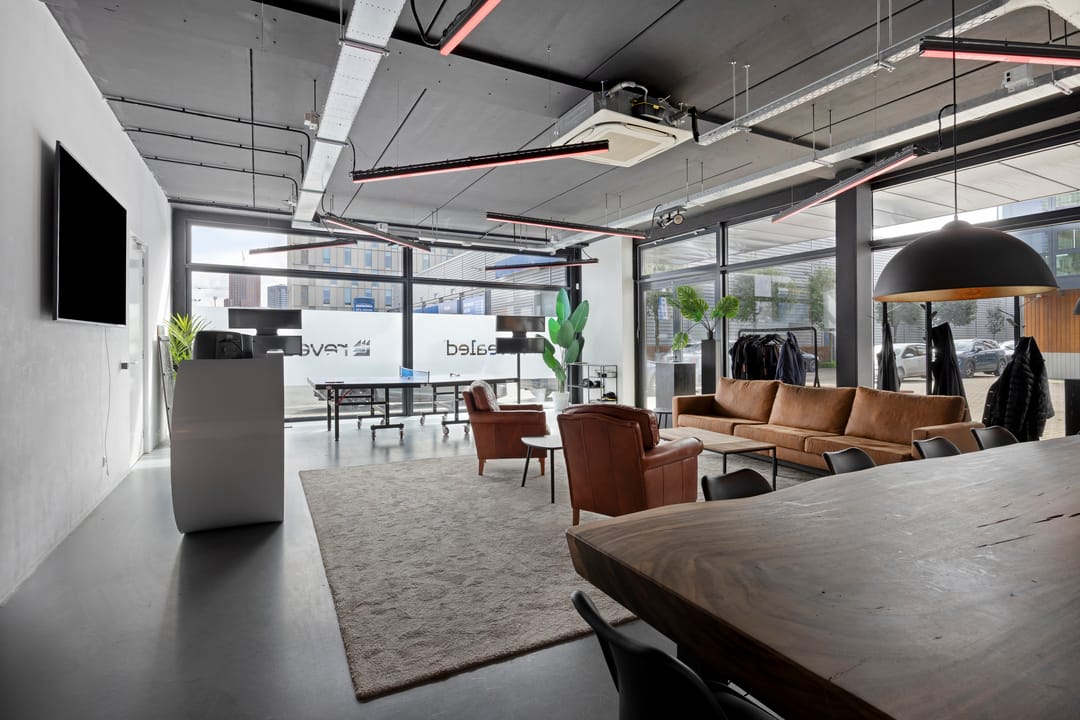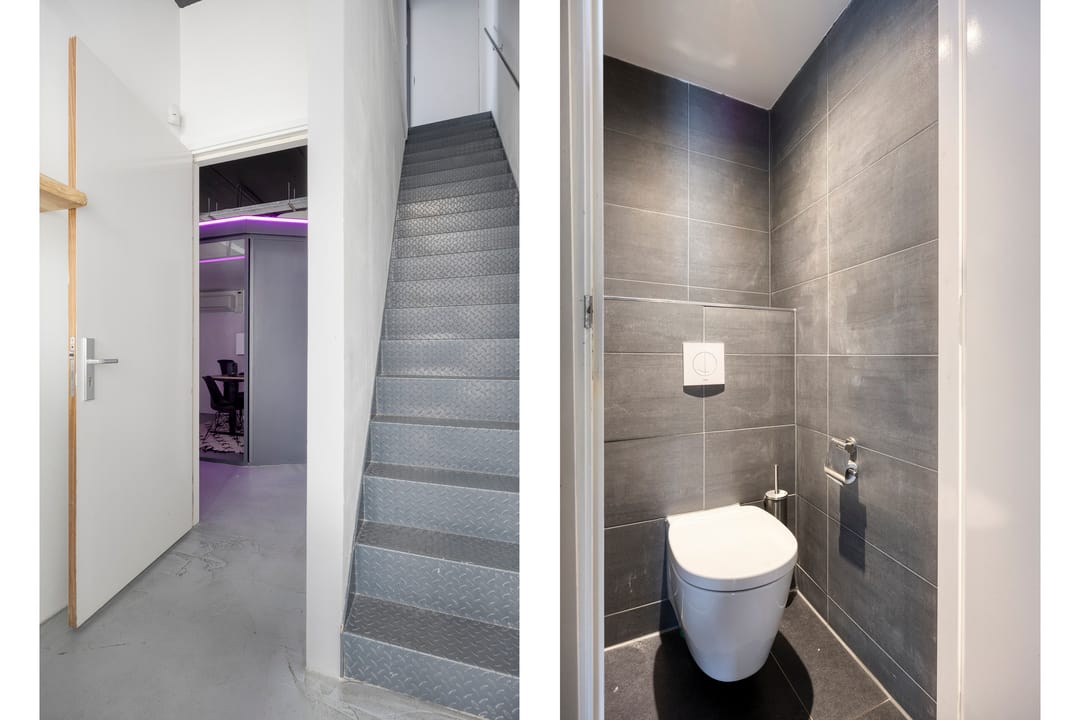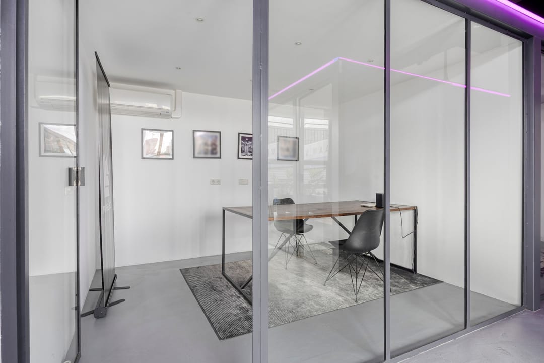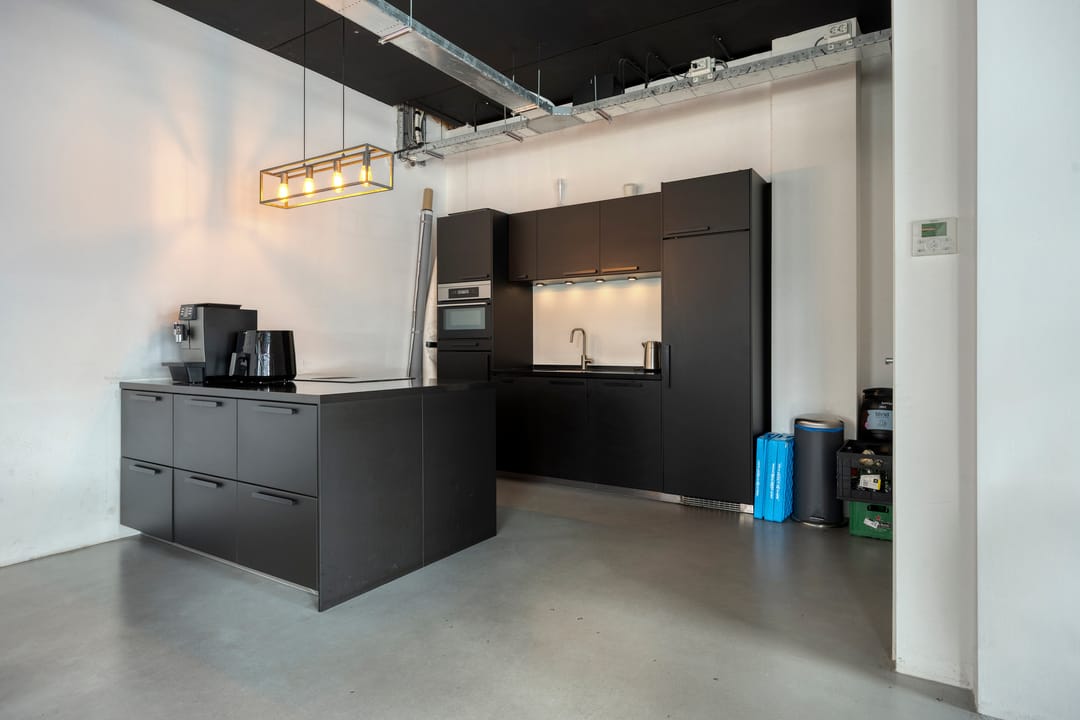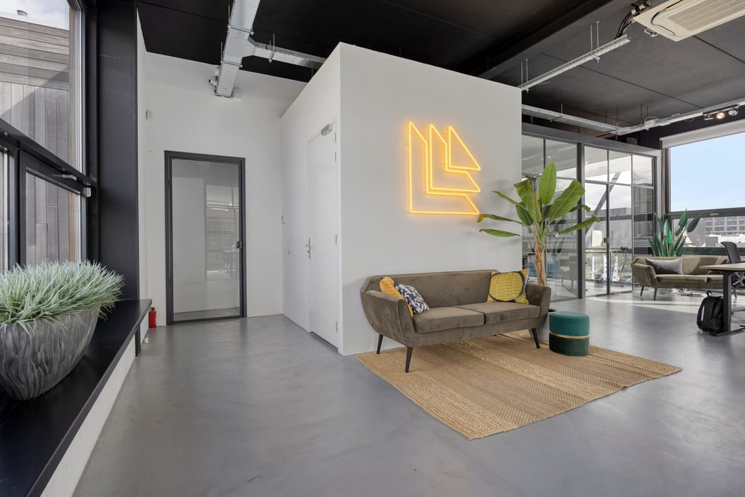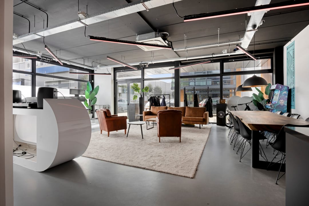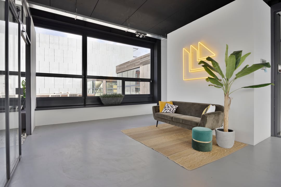 Drie afgesloten kantoorruimten gecombineerd met een ruime open werk- of loungeomgeving. Ideaal als directieverdieping, creatieve studio of flexibele werkruimte.
