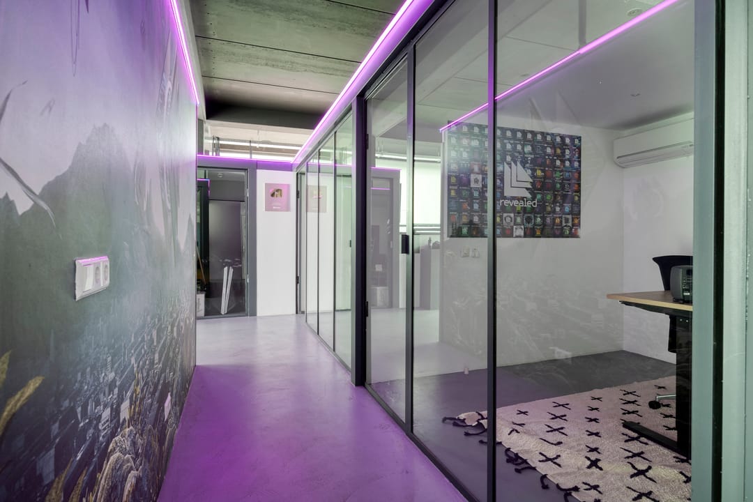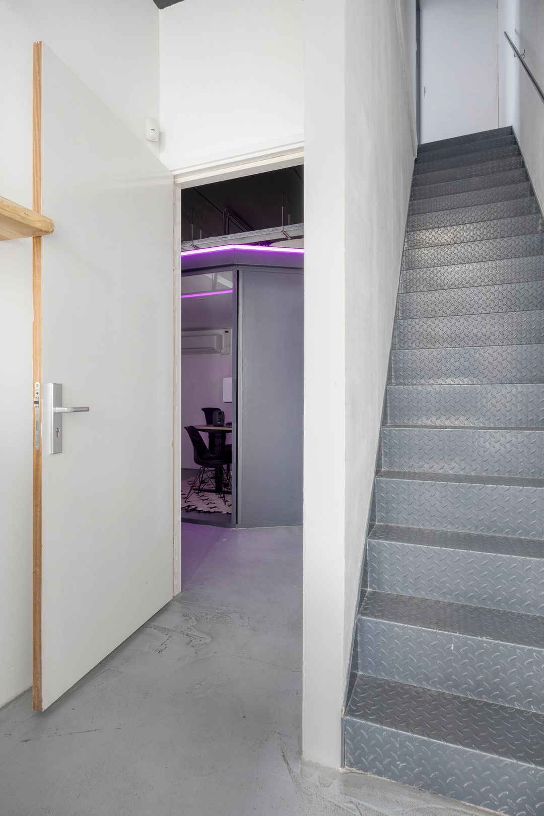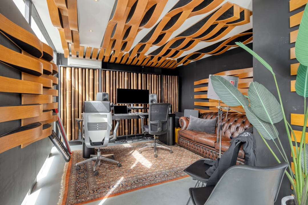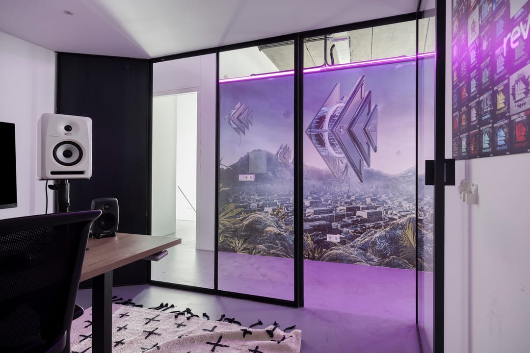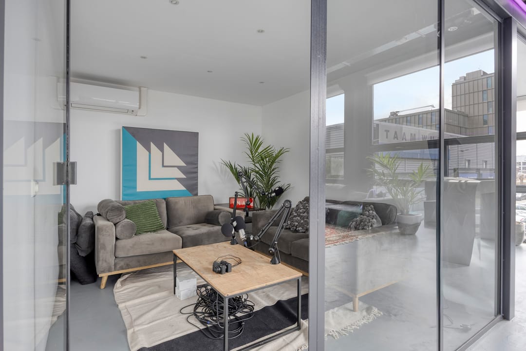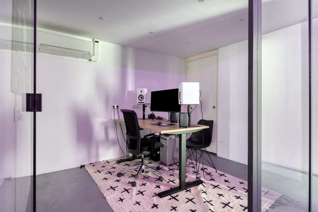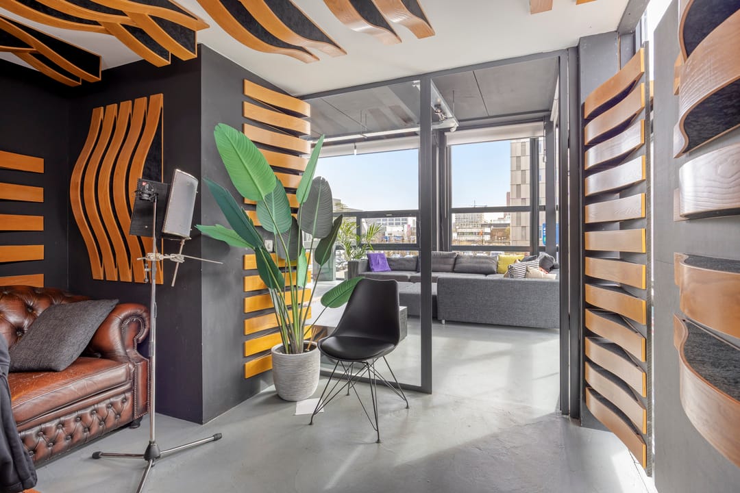 Drie afgesloten kantoorruimten gecombineerd met een ruime open werk- of loungeomgeving. Ideaal als directieverdieping, creatieve studio of flexibele werkruimte.
