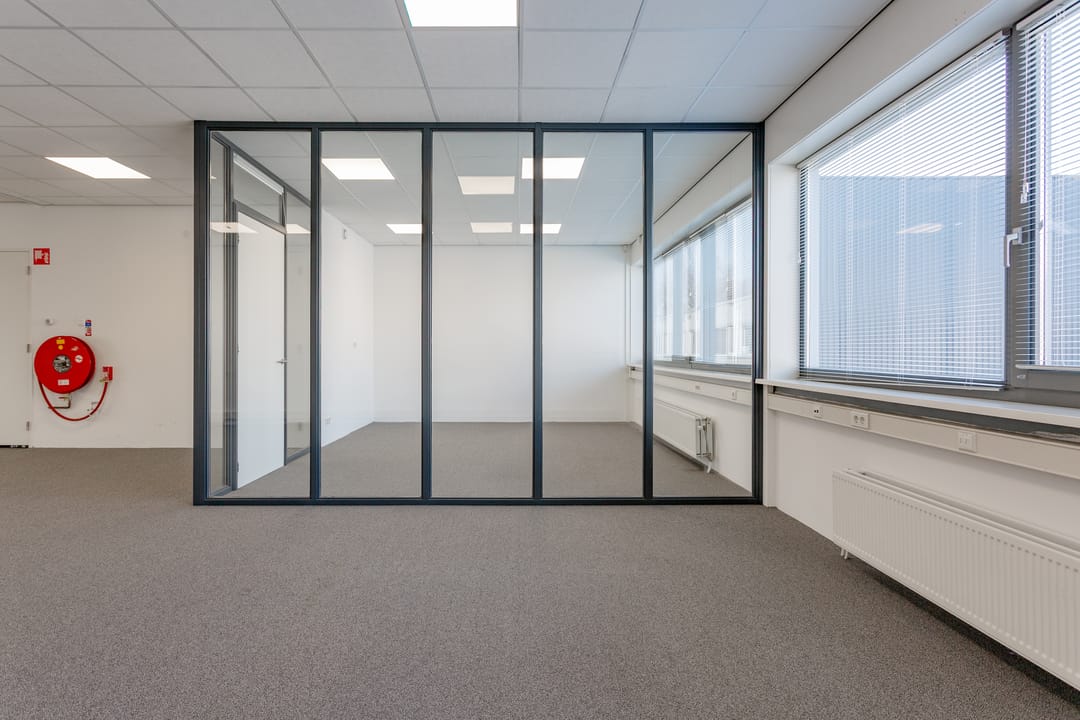 De kantoorruimte is voorzien van 2 separate toiletruimtes en een keukenopstelling en een lichte afzonderlijke vergaderruimte.