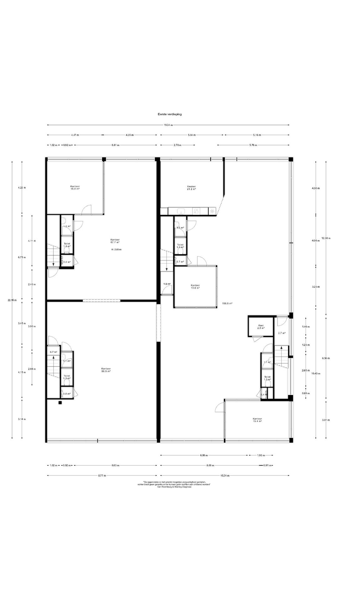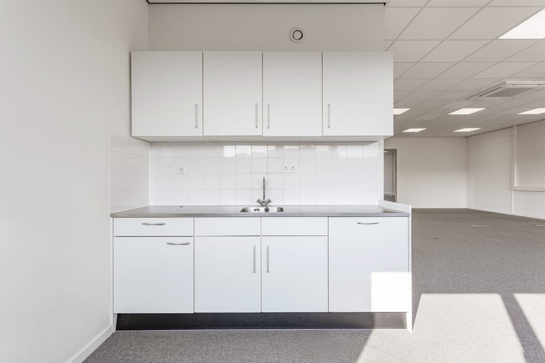 De kantoorruimte is voorzien van separate toiletruimtes en een tweetal keukenopstelling (een luxe en één praktische beschikbaar als kitchenette) ruime open kantoorruimten en lichte afzonderlijke vergaderruimten.