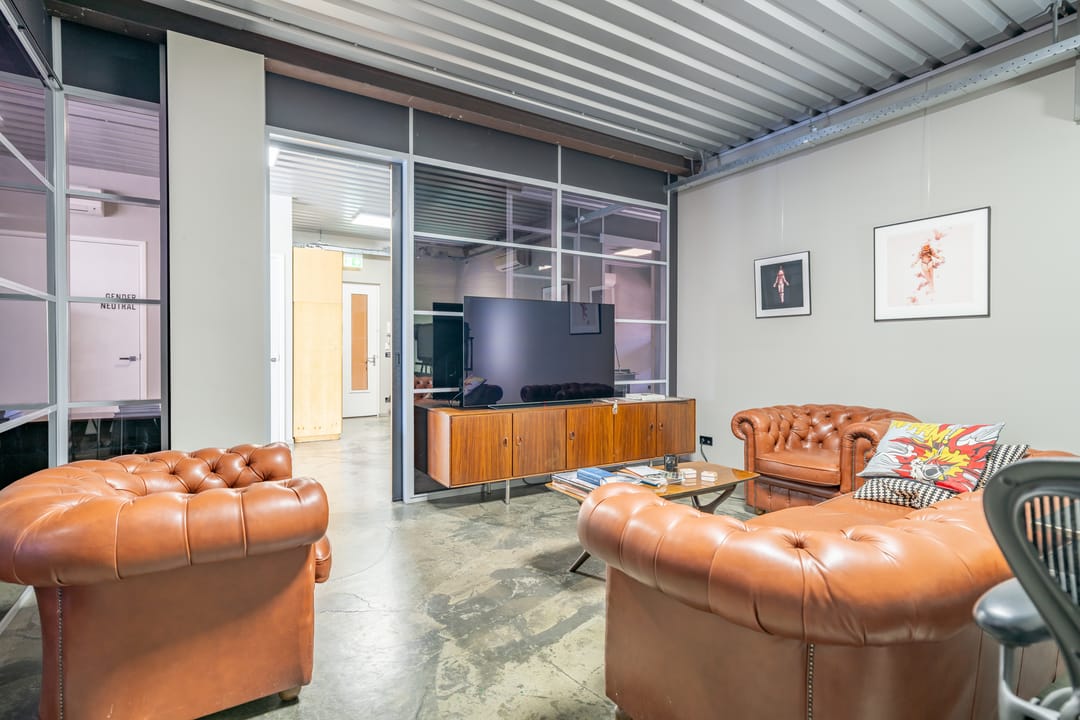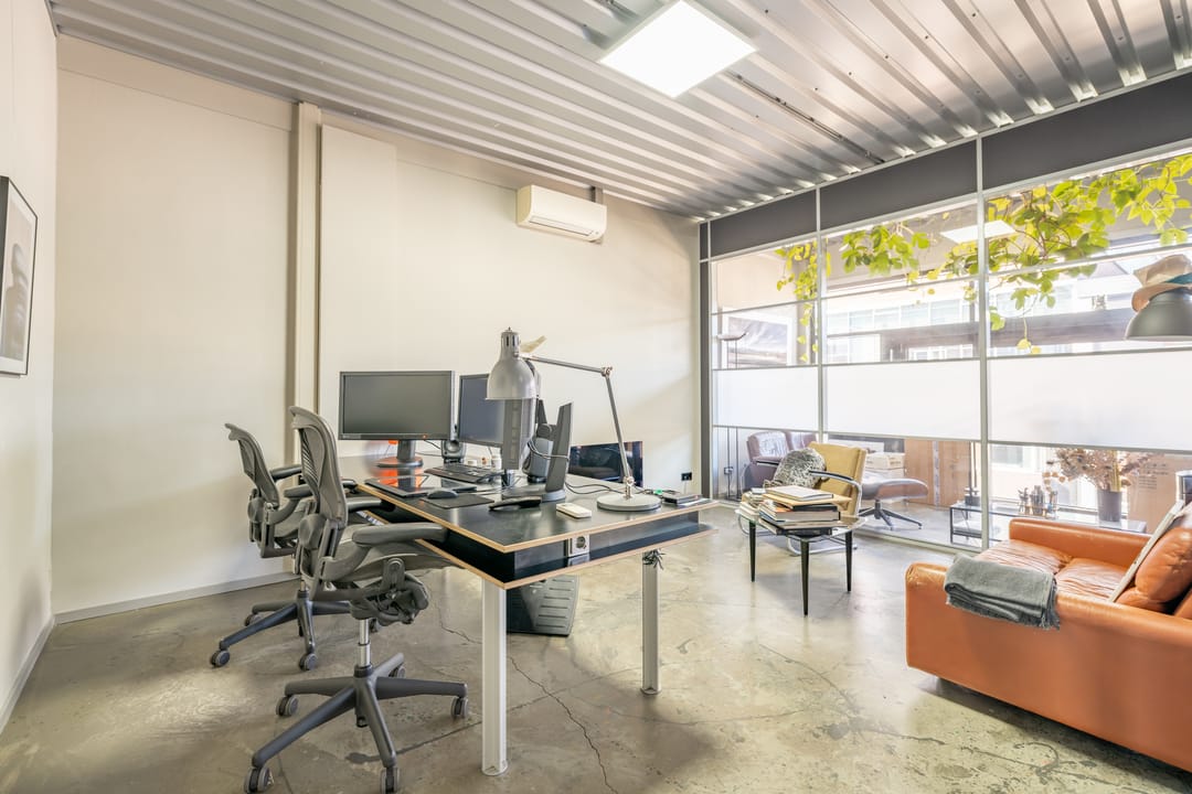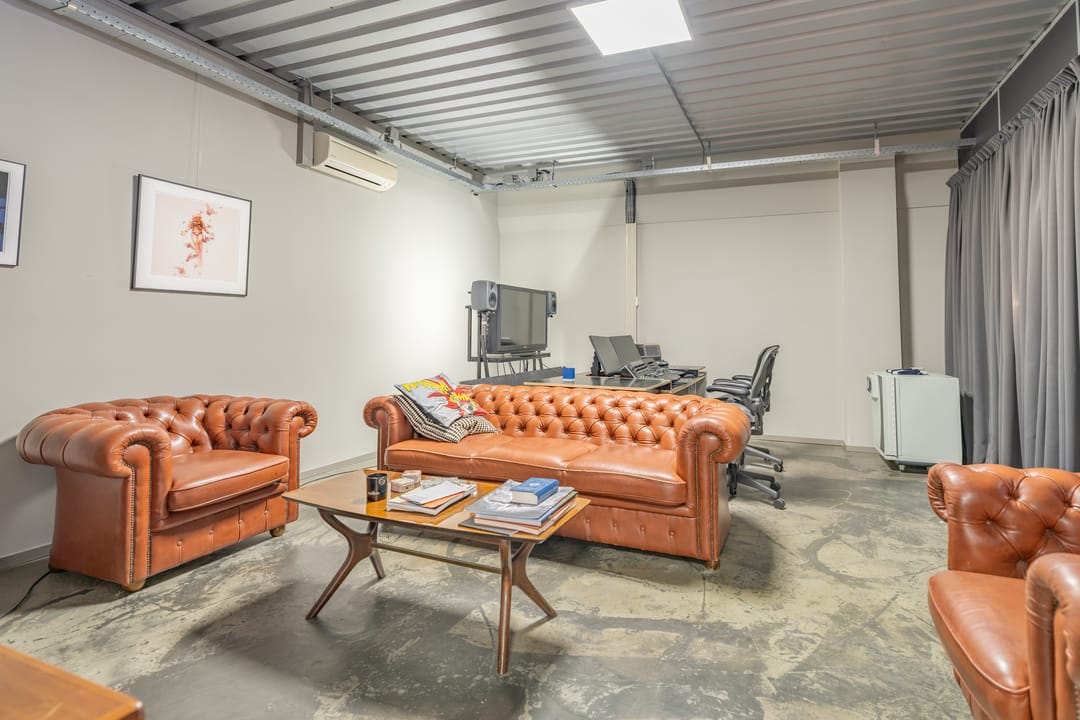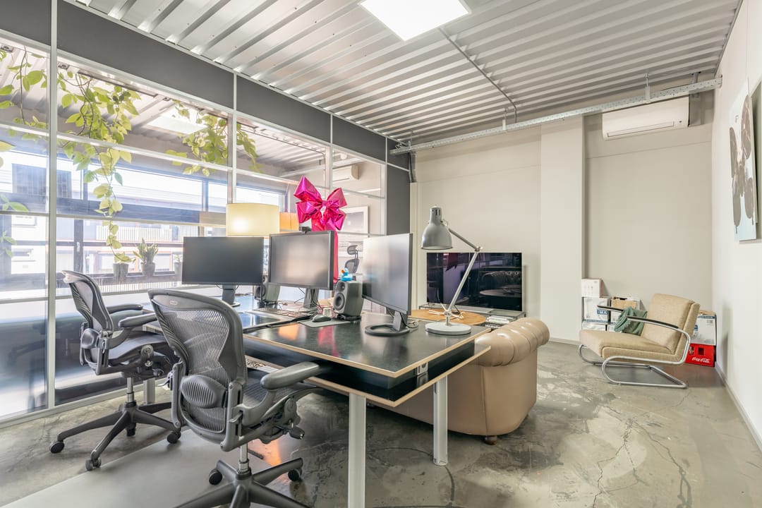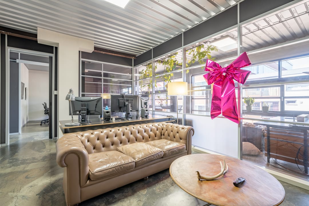 De voorzijde en de achterzijde worden gescheiden door een glazen vergaderkamer in het midden van de ruimte.