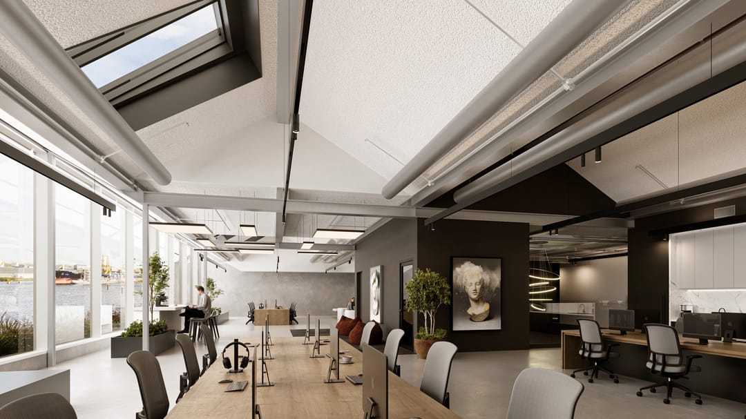 Het object gelegen aan de Koivistokade 56 te Amsterdam is recent uitgebreid met een prachtige penthouseverdieping. De hoogwaardige en representatieve kantoorruimte van circa 353 m² verhuurbaar vloer oppervlakte (v.v.o.) beschikt over hoge plafonds met industriële zaagtand profiel, een spectaculaire boardroom en prachtig beschut dakterras.