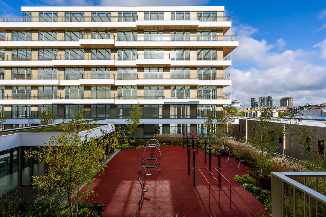 Maar het is op de grote daktuin van de tweede verdieping waar de magie echt tot leven komt. Hier bevindt zich een weelderige daktuin met multifunctionele faciliteiten die je nergens anders in Amsterdam zult vinden. Een lounge area om te ontspannen na een productieve dag, een semi overdekte vergaderruimte om je ideeën tot leven te brengen, en misschien wel het meest opwindend, een multifunctioneel sportveld met o.a. fitness en yoga mogelijkheden waar je je energie kunt ontladen en de teamgeest kunt versterken.