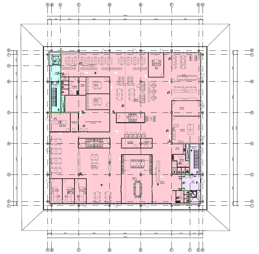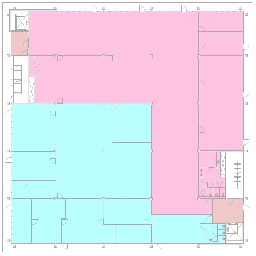 - 2e verdieping > ca. 1.609 m² v.v.o. kantoor-/bedrijfsruimte