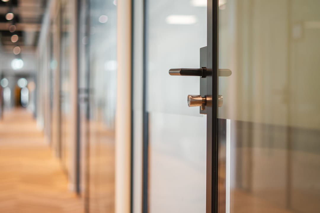 This specific office is located on the fifth floor, accessible via an app with digital locks, climate control, sunshades, and optional furniture. Different-sized units are available, and offices can be combined.