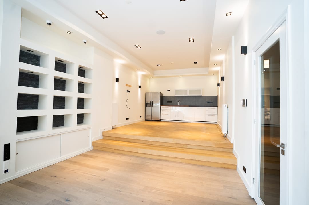- Peak cooling, built-in fittings, elevators, windows can be opened, cable ducts, modular ceiling, toilet, pantry, heating and room layout