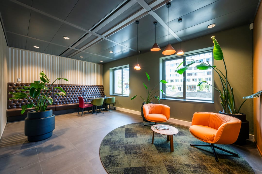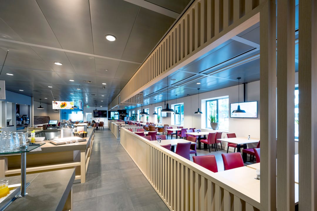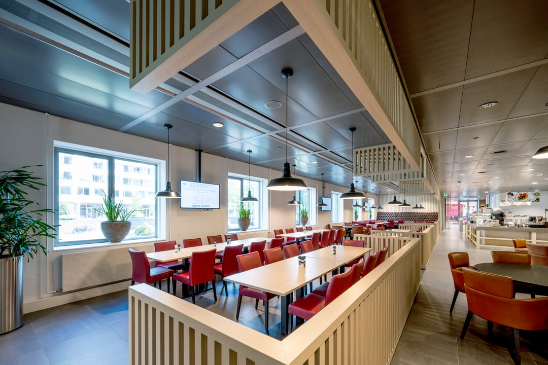 Ventilatie, koeling en verwarming vindt plaats middels een 4-pijpsinductiesysteem;