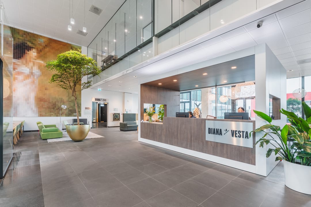 This representative office space is located in the Diana Building at Herikerbergweg 292-342 in Amsterdam Zuidoost. The building is part of the modern Diana & Vesta office complex — a prominent location within the dynamic Amsterdam Zuidoost business district. The complex is characterized by its modern architecture, high-quality finishes, and the presence of various leading companies.