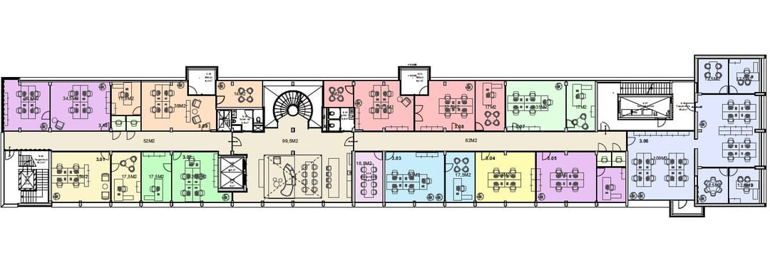 This representative office building offers various premium suites, ranging from 4 to 16 workstations and approximately 35 m² to 159 m². All units are fully finished, delivered turnkey, and equipped with excellent facilities.