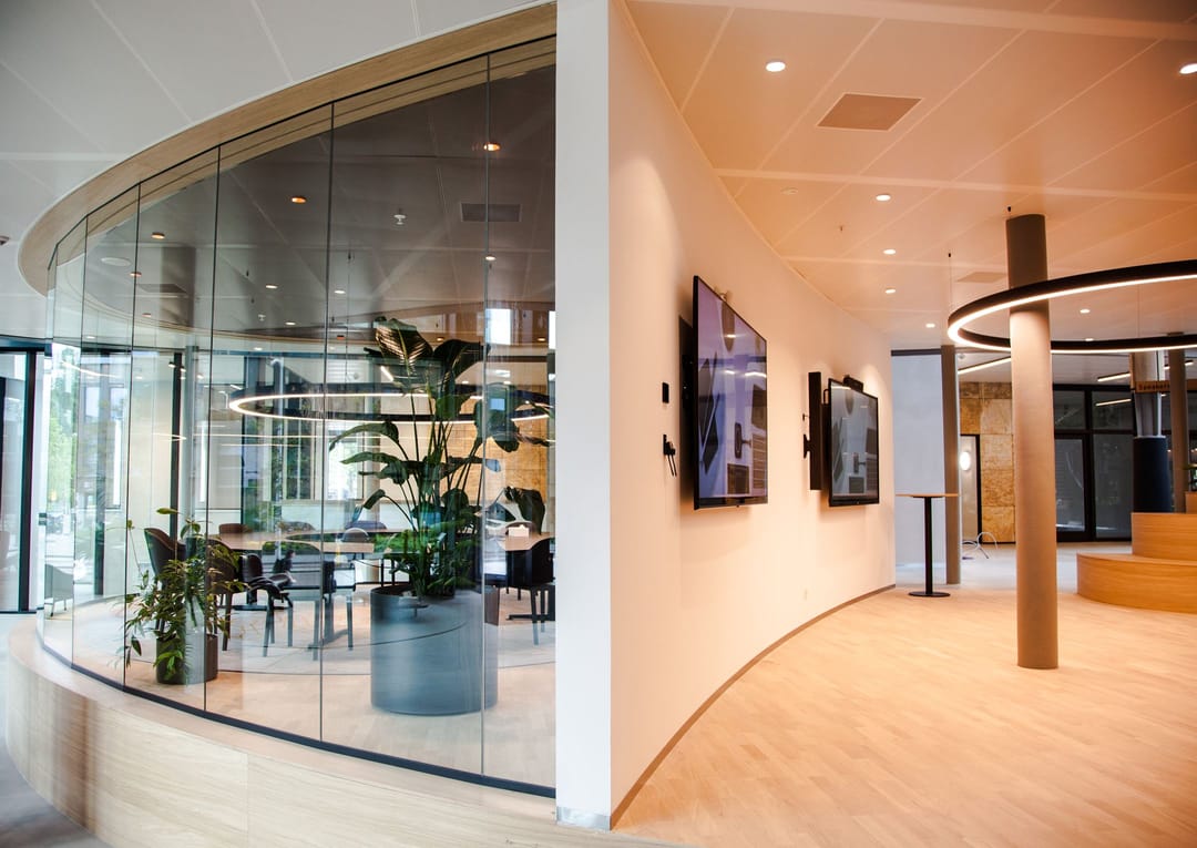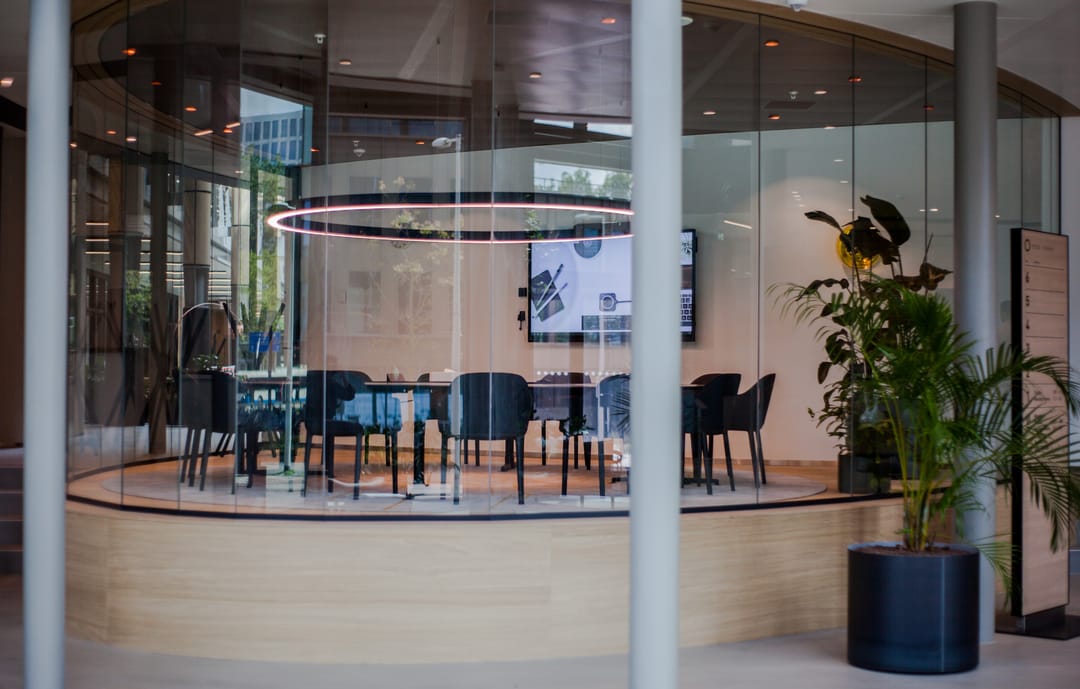The offices are delivered turn-key in the base. Equipped with a sunshade and climate control system. It is possible to make adjustments in the fit-out. If you want to be completely unburdened, it is also possible to have the office space delivered including furniture.