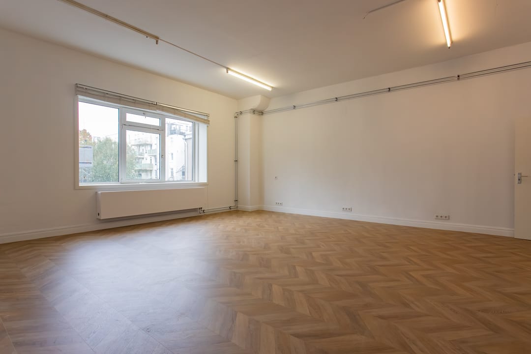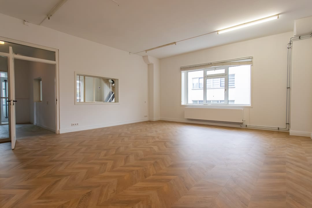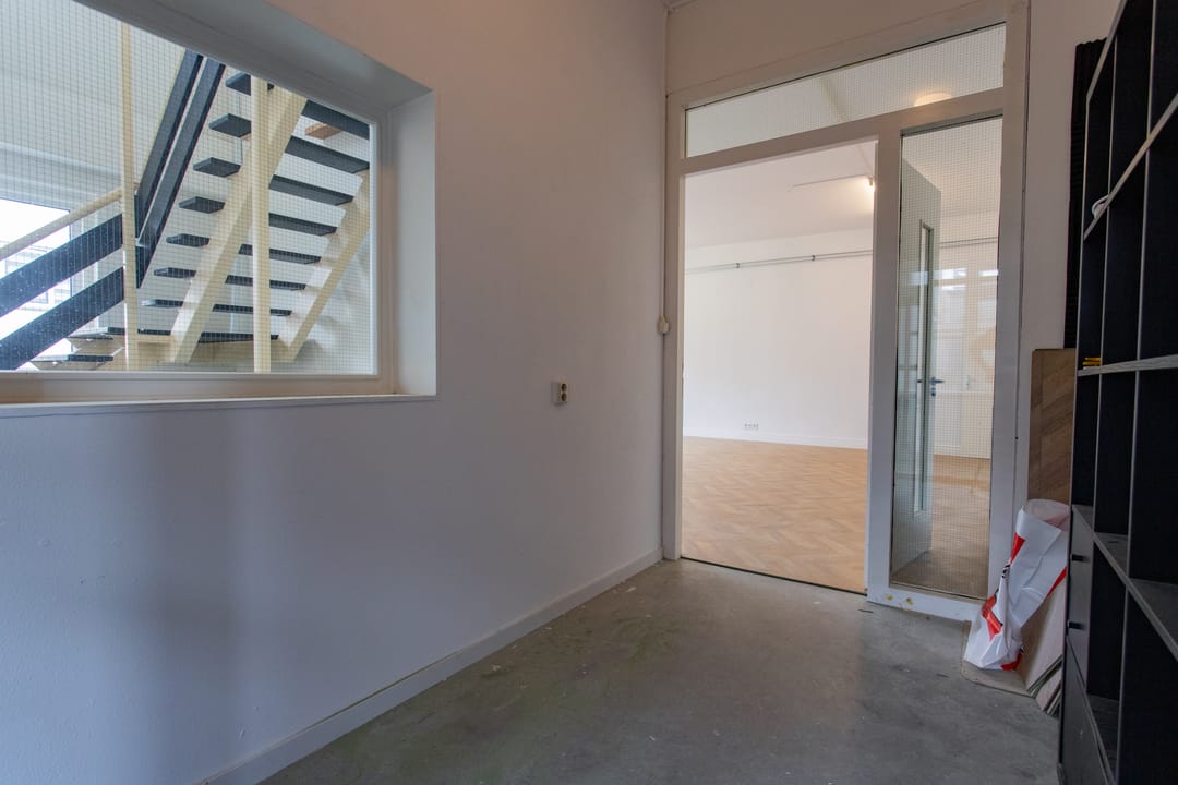 De ruimte is zojuist gerenoveerd met onder andere een nieuwe vloer, geverfde muren en isolatie. Dit Plekky op de eerste verdieping heeft een oppervlakte van ca. 54 m² en een super handige indeling. Een wat grotere ruimte en een kleine aparte ruimte.