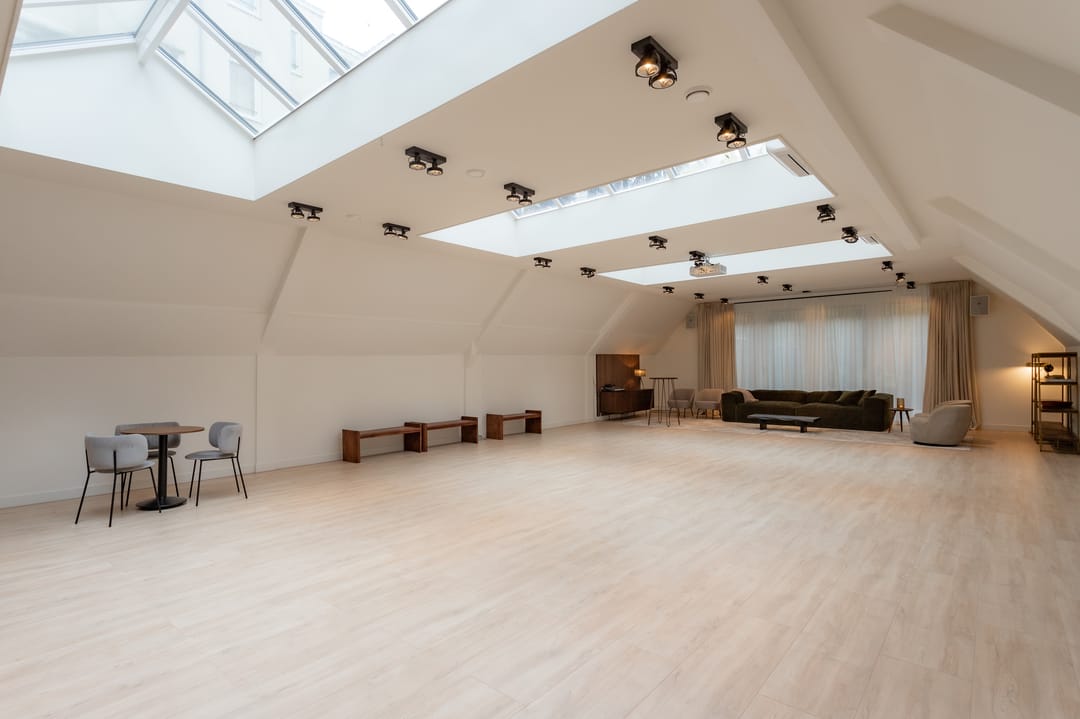 Naast de fenomenale locatie, onderscheidt de ruimte zich door de grote glazen dakramen en het ruimtelijke loft gevoel. De serene rust van het park zorgt voor een unieke en inspirerende werkomgeving. Daarbij beschikt de kantoorruimte over een eigen buitenruimte, twee ingebouwde vergaderruimtes en een keuken voorzien van inductieplaat, oven, Quooker, dubbele toiletgroep en douche. En zeer uniek om aan het einde van de straat zo het Vondelpark in te lopen. De kantoorruimte wordt in de huidige turn-key staat opgeleverd, inclusief vloerverwarming, 5 airco units en de inventaris kan worden gehuurd of gekocht.
