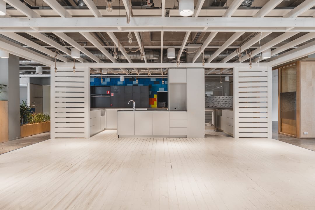 Peak cooling, elevators, windows can be opened, cable ducts, modular ceiling, toilet, pantry, heating and room layout