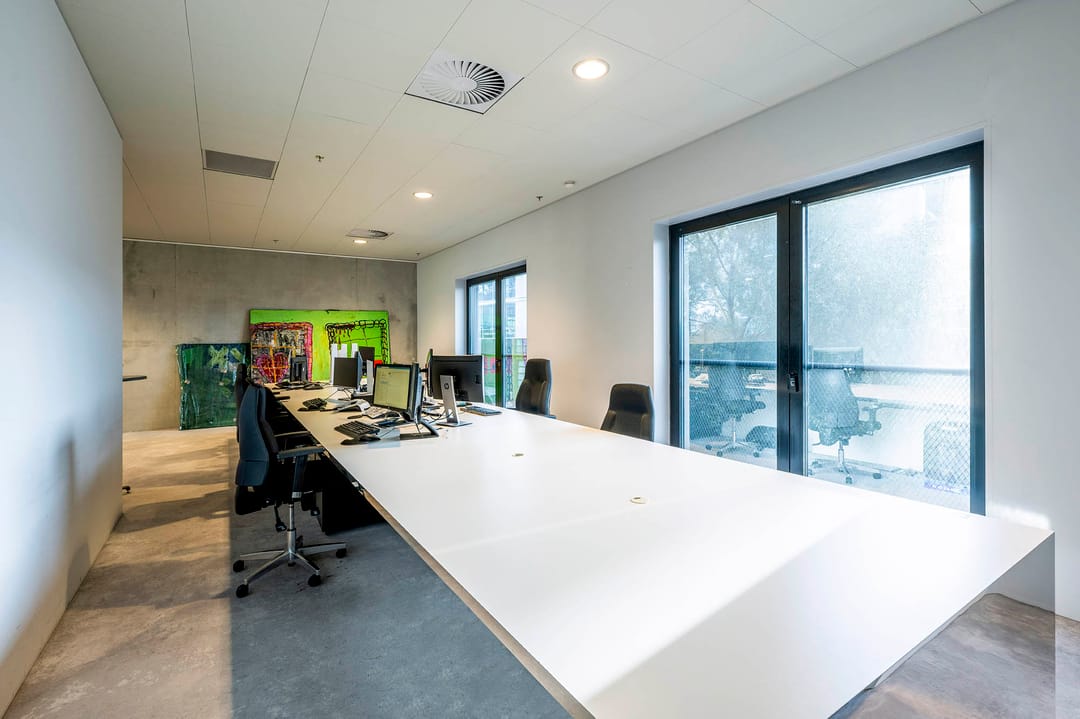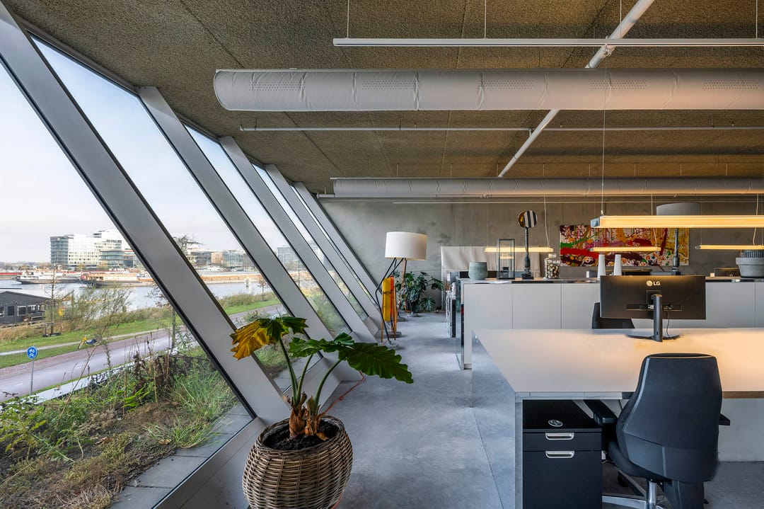 De hoogwaardige en representatieve kantoorruimte gelegen in het penthouse van circa 352 m² verhuurbaar vloer oppervlakte (v.v.o.) - beschikt over hoge plafonds met een akoestisch zaagtand profiel, LED verlichting en legklare vloeren. De ruimte beschikt over een spectaculaire boardroom en prachtig beschut dakterras.