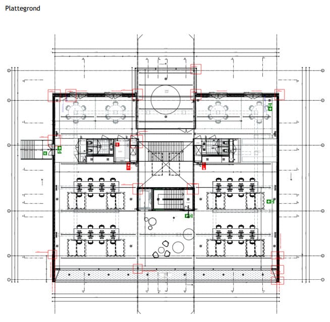 - de vloer is voorzien van CAT6 data bekabeling in de vloerpotten met een patchkast inclusief switchboard;