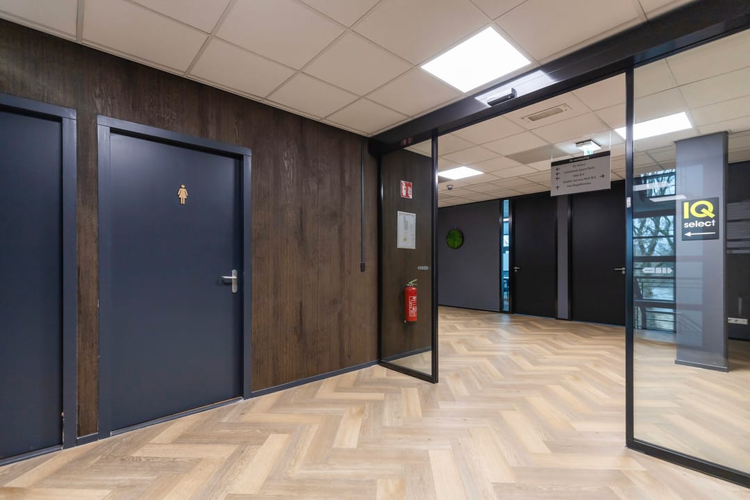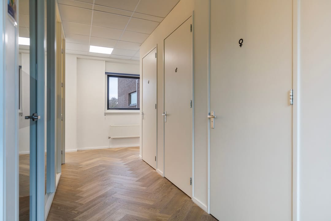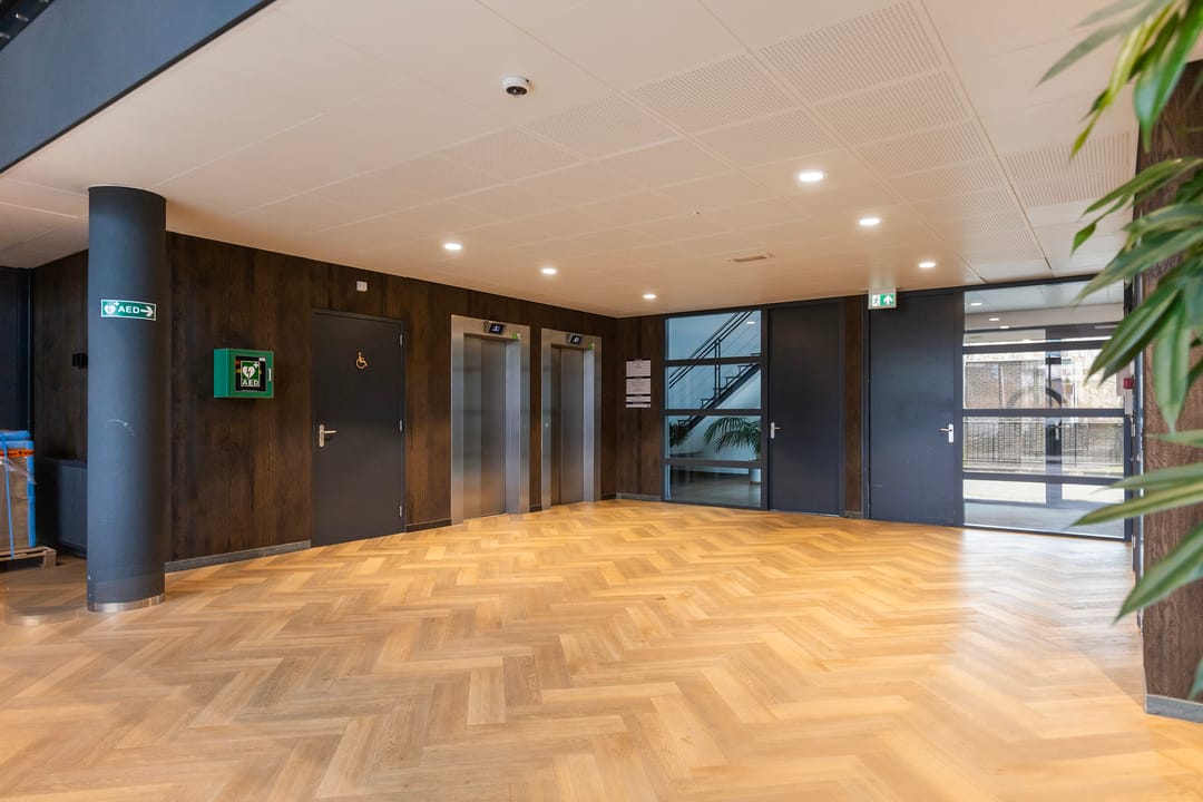 De entree bestaat uit een ruime hal voorzien van een vide met ruime zitplaatsen voor wachtende bezoekers. Aansluitend is een dubbele liftvoorziening, alsmede de hoofdtrap. Nabij de centrale hal zijn toiletten voorzien inclusief een minder-validentoilet.
