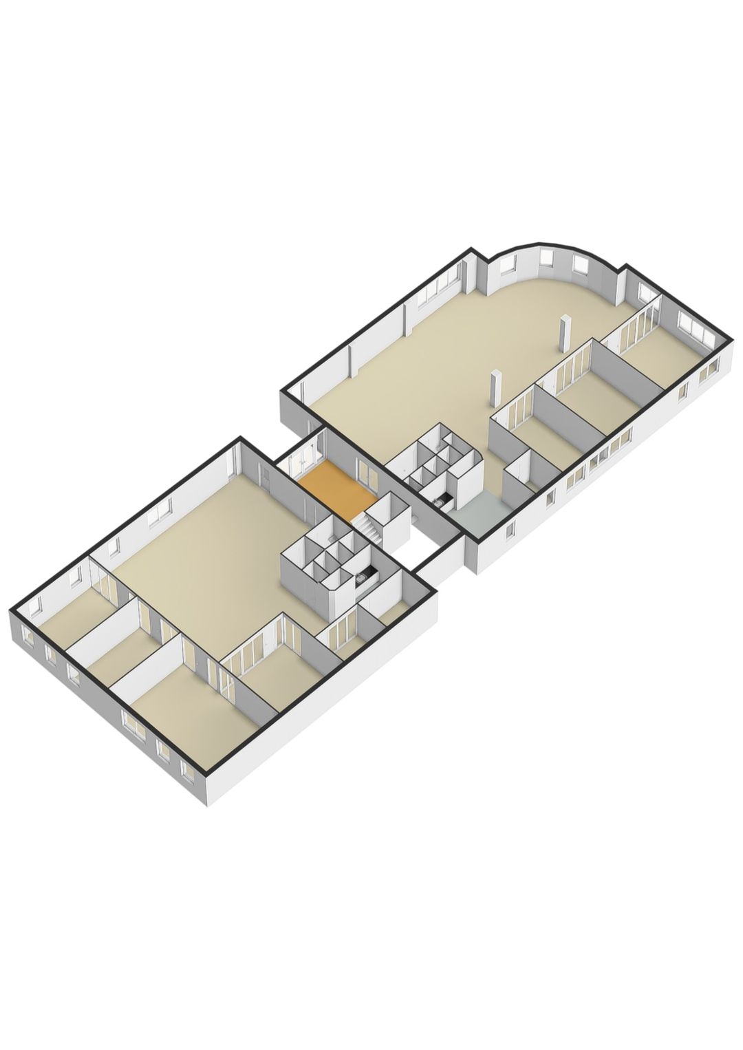 Uitbreiding van de ruimte met het overige deel van de begane grond (ca. 255 m² VVO) en/of het souterrain welke is ingericht met een moderne presentatieruimte met v.v. presentatie apparatuur en een luxe keuken (ca 334 m² VVO), is eveneens mogelijk.