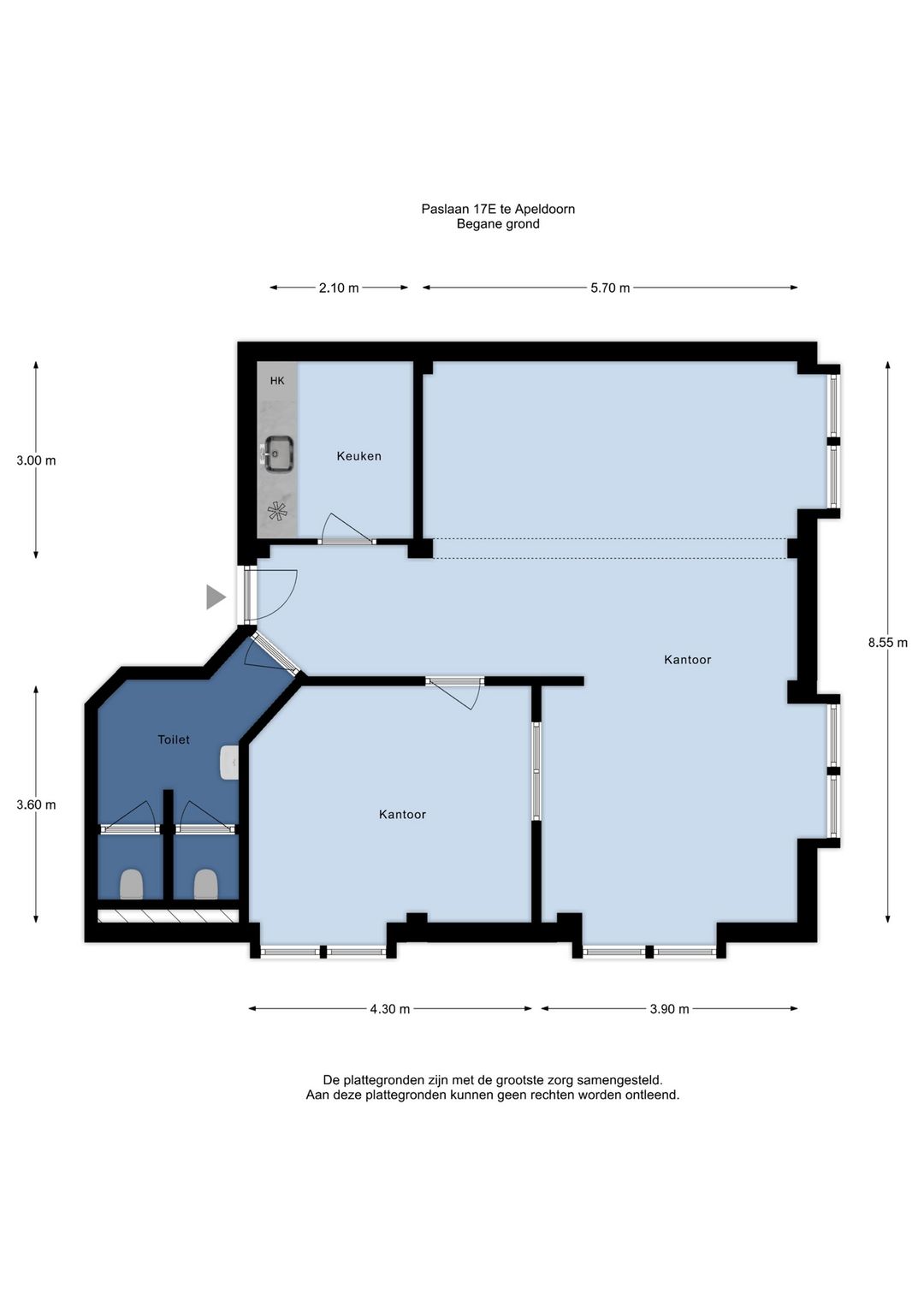 Aan deze objectinformatie kunnen geen rechten worden ontleend en deze informatie kan niet als aanbieding of offerte worden beschouwd maar geldt als uitnodiging om in onderhandeling te treden. Alle informatie is geheel vrijblijvend en uitsluitend voor geadresseerde bestemd. Alle gegevens zijn met zorg samengesteld en uit ons inziens betrouwbare bron afkomstig. Ten aanzien van de juistheid ervan kunnen wij echter geen aansprakelijkheid aanvaarden. Door ons wordt geen aansprakelijkheid aanvaard behoudens voor zover de door ons verplicht afgesloten beroepsaansprakelijkheidsverzekering in voorkomend geval aanspraak op een uitkering geeft.