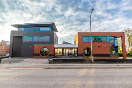 Op eigen terrein is ruime parkeergelegenheid voorhanden (ca. 30 parkeerplekken naast en 4 parkeerplekken naast het gebouw).