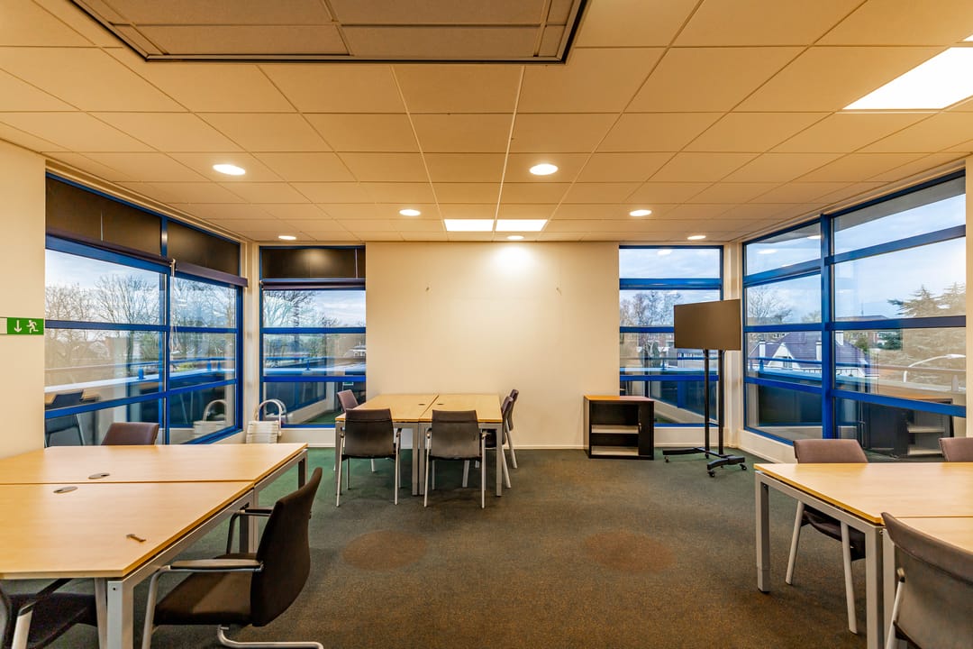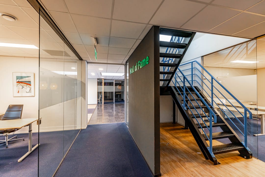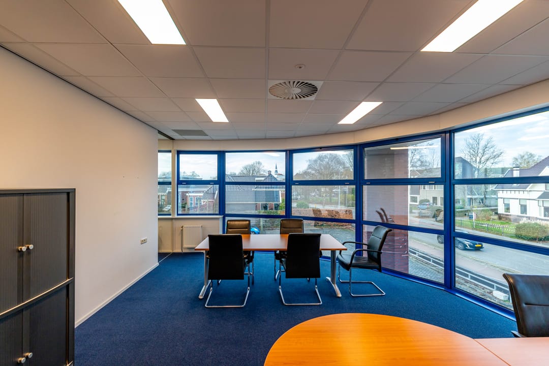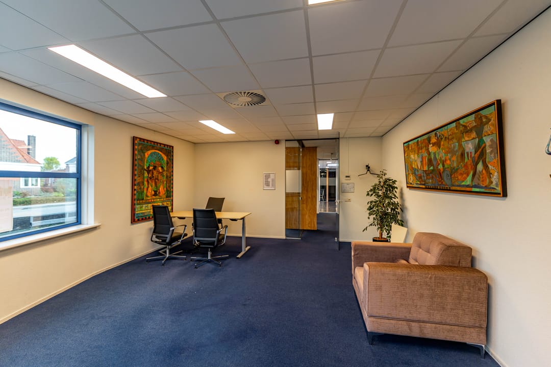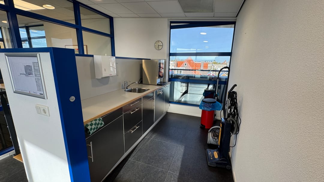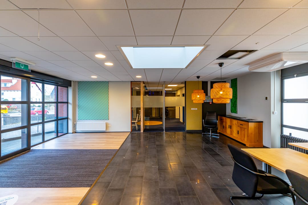 - Tweede verdieping: kantoor/vergaderruimte, pantry en buitenruimte rondom.