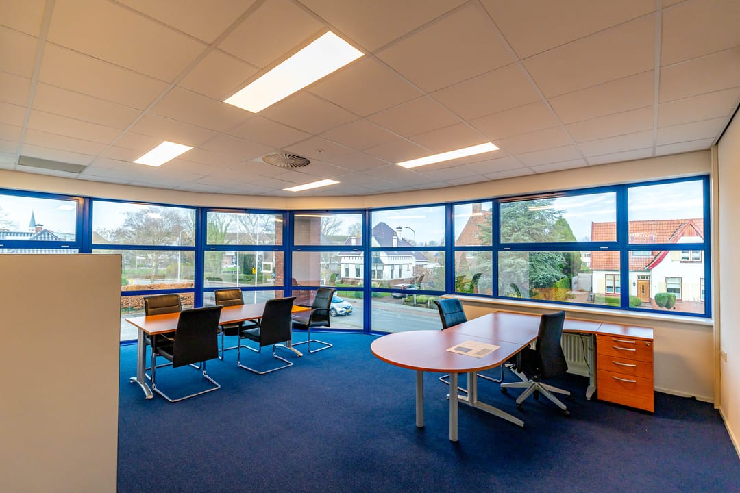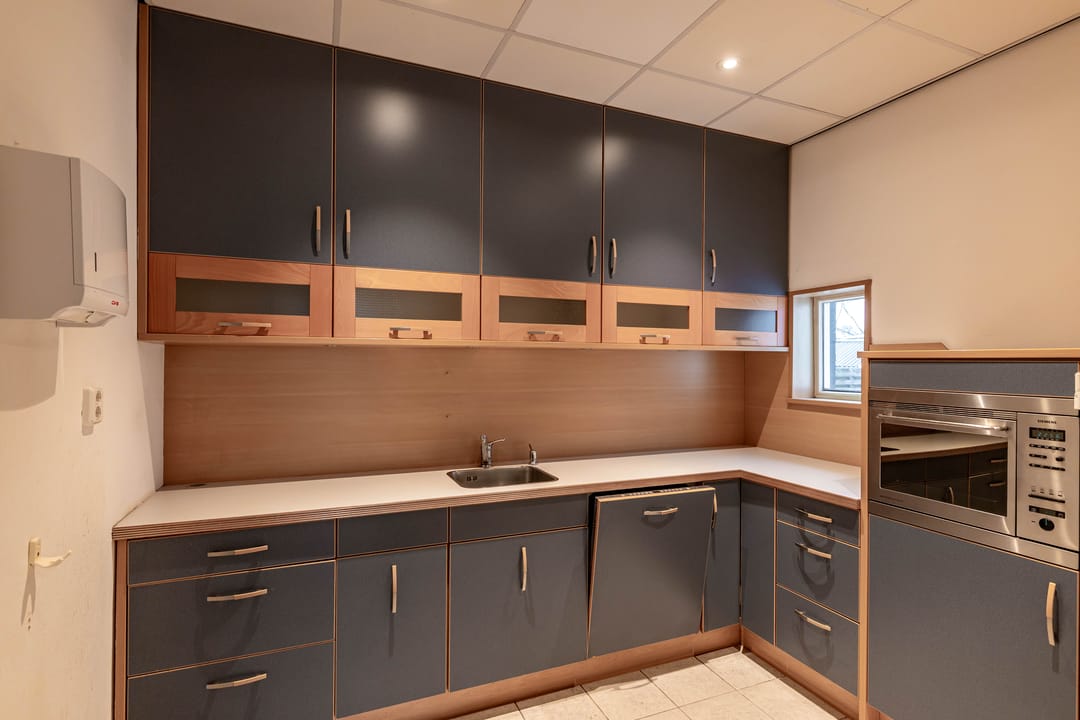 - Begane grond: ontvangstruimte, kantoorruimten, pantry met volledige keukeninrichting, archiefruimte, toiletgroep, werkkast en een afzonderlijke garage/opslag.