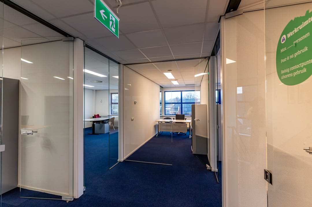 - Eerste verdieping: verschillende kantoorruimten, cv ruimte en toiletgroep.