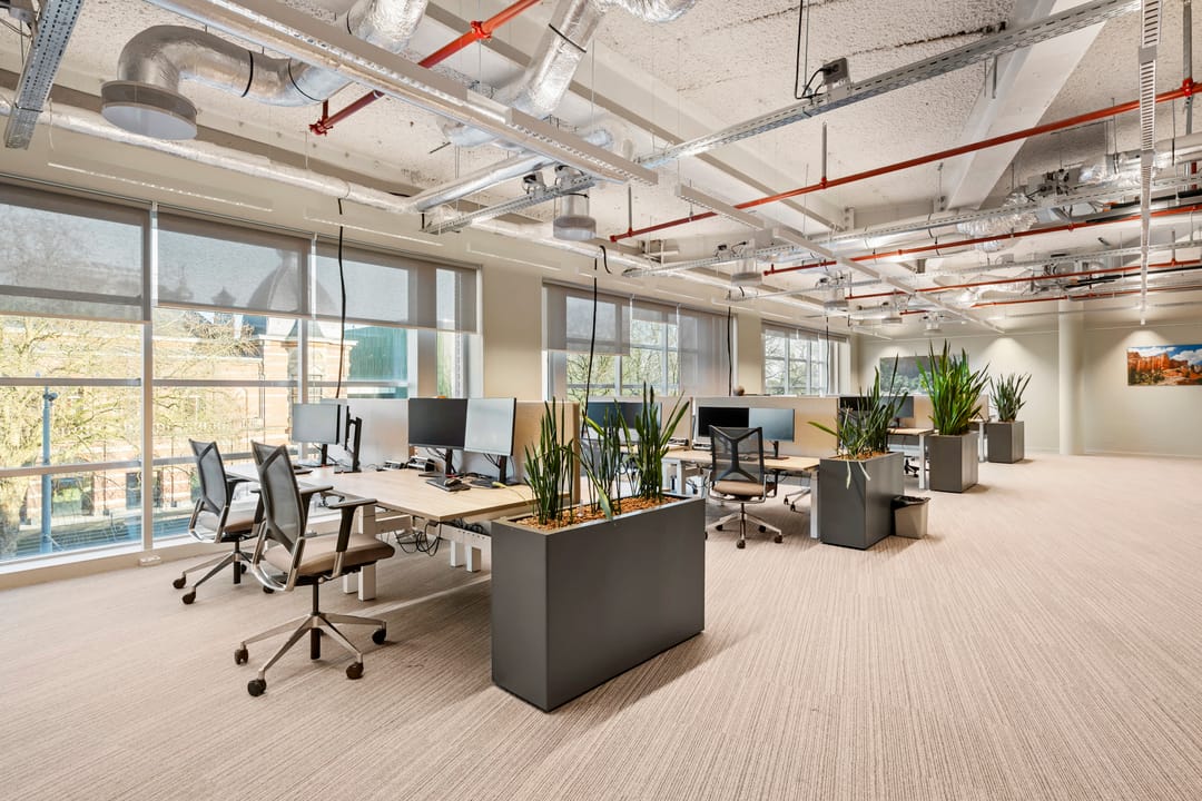 - Automatisch geschakelde verlichting in de kantoren op basis van aanwezigheid;