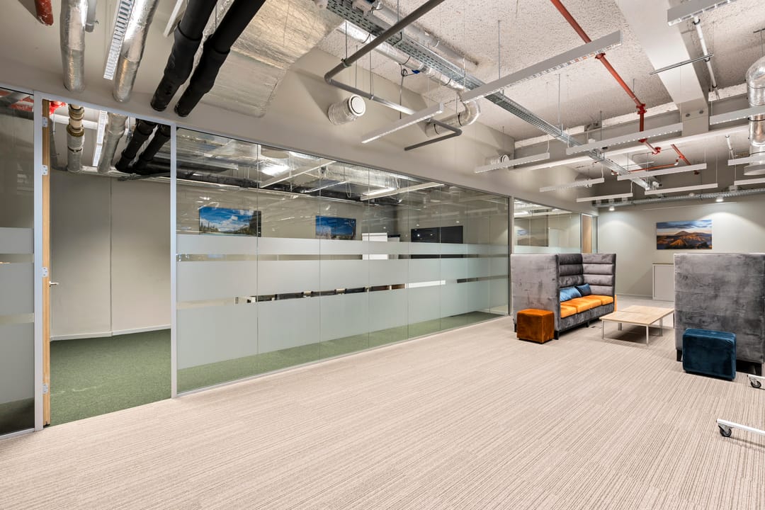 De ruimte is voorzien van gedeeltelijk PVC vloer en gedeeltelijk vloerbedekking alsmede een drietal meetingrooms en een volledig geoutilleerde pantry.