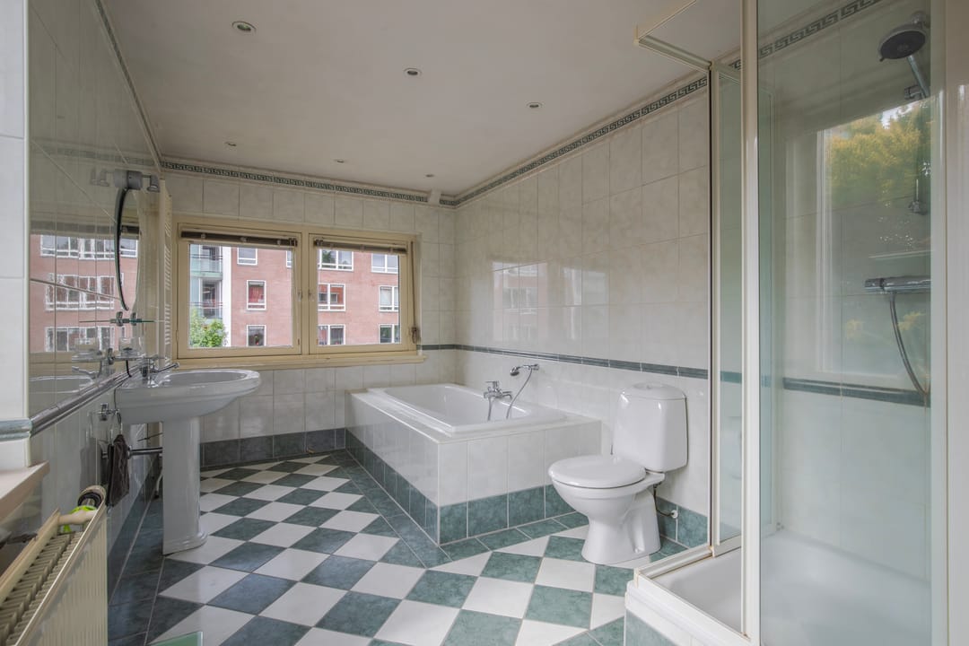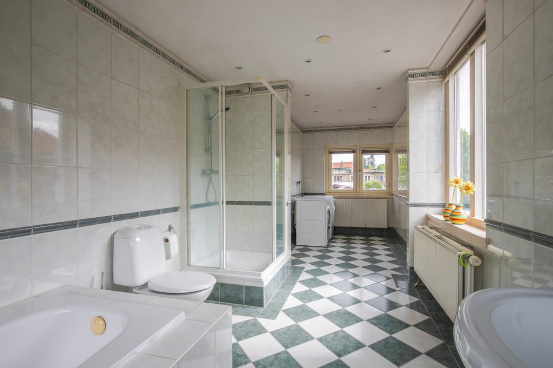 Ruime overloop met toegang tot een zeer grote slaapkamer, gesitueerd aan de voorzijde van de woning, voorzien van wastafelmeubel, meerdere vaste kasten en airconditioning. Zeer royale badkamer, welke beschikt over een ligbad, douchecabine, wastafel, toilet en aansluiting voor was apparaten.