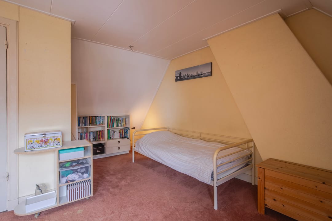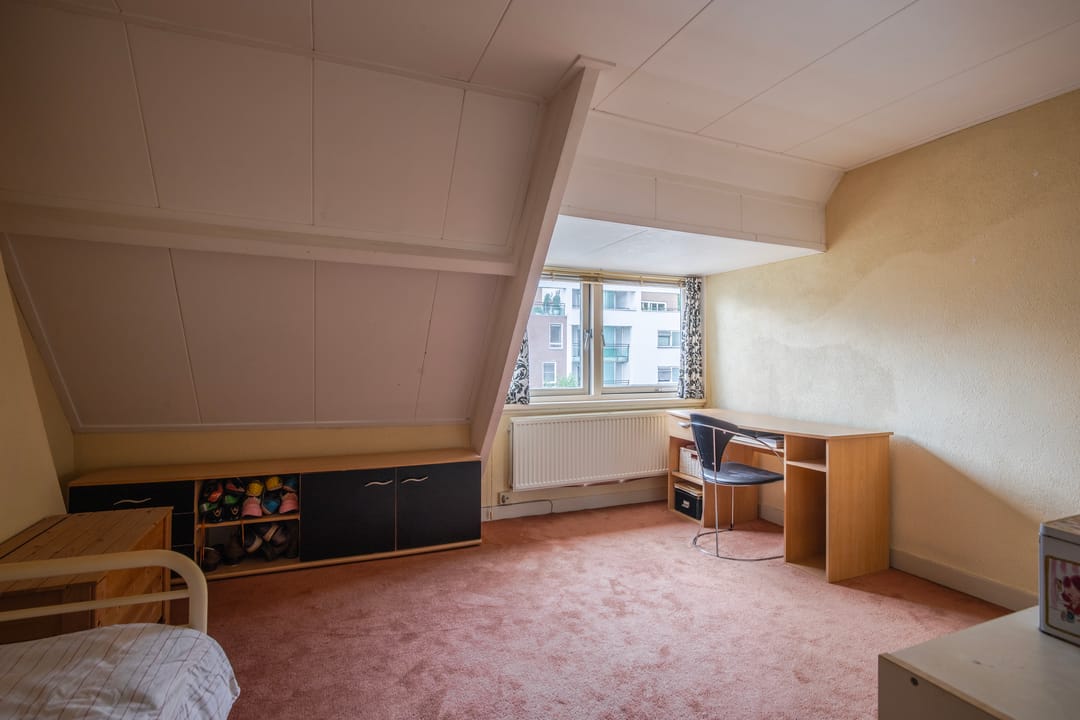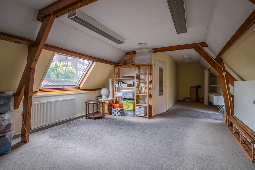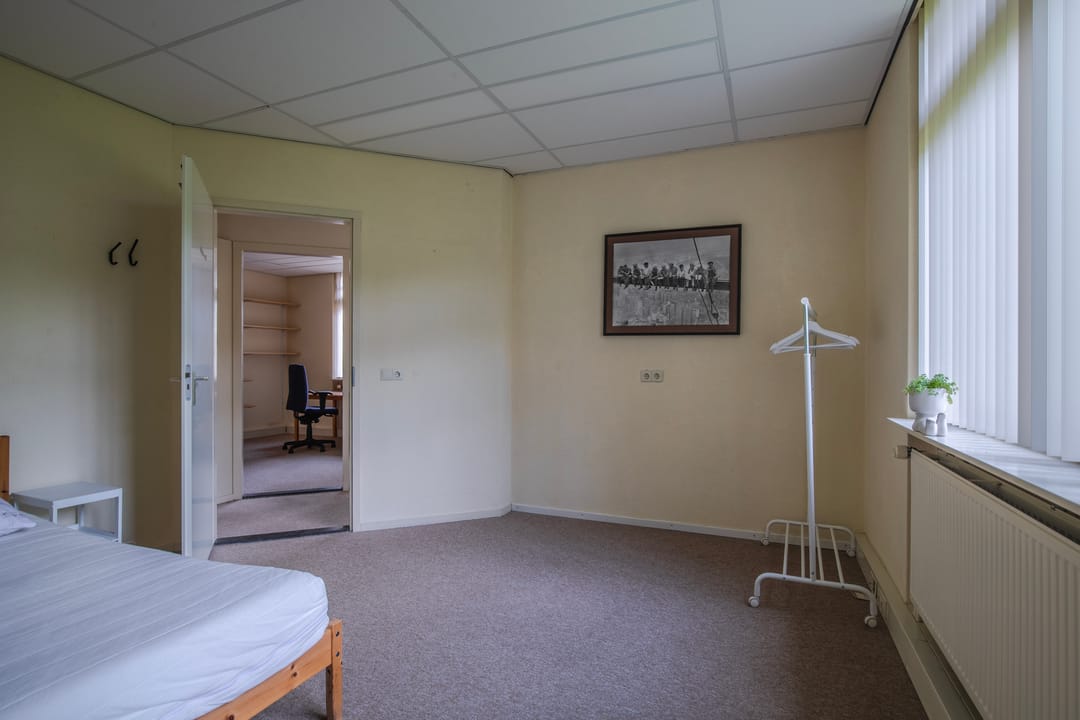 Overloop met, bergkast en drie zeer ruime slaapkamer, waarvan de achtergelegen slaapkamer beschikt over berging met opstelplaats voor de boiler en de, in 2024 nieuw geplaatste, Cv-ketel en warmtepomp. Op de tweede verdieping is het oorspronkelijk woonhuis en de aanbouw met elkaar in verbinding.