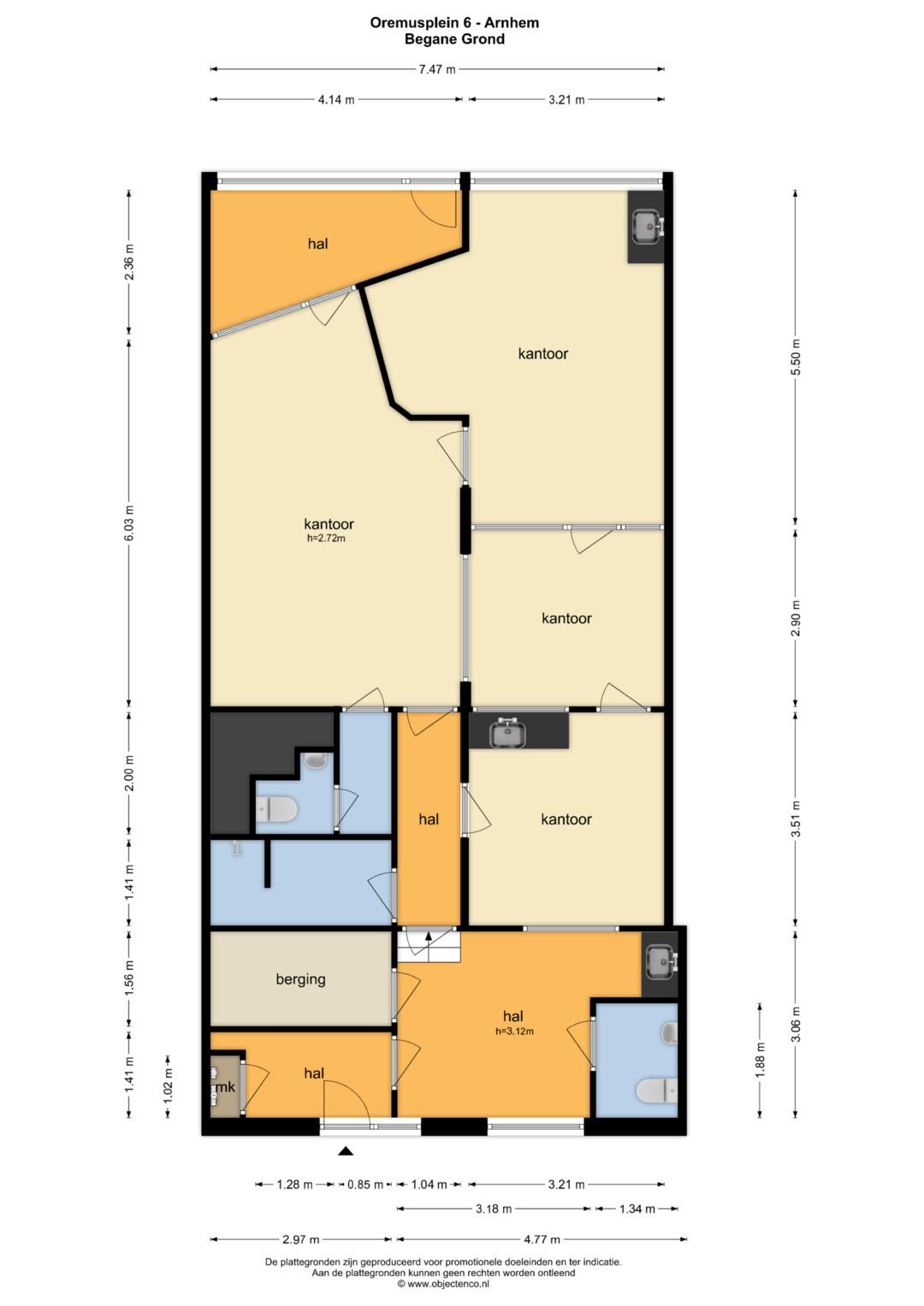 Ca. 7,5 meter. Tevens beschikt het object over een achteringang die uitstekend bereikbaar is.