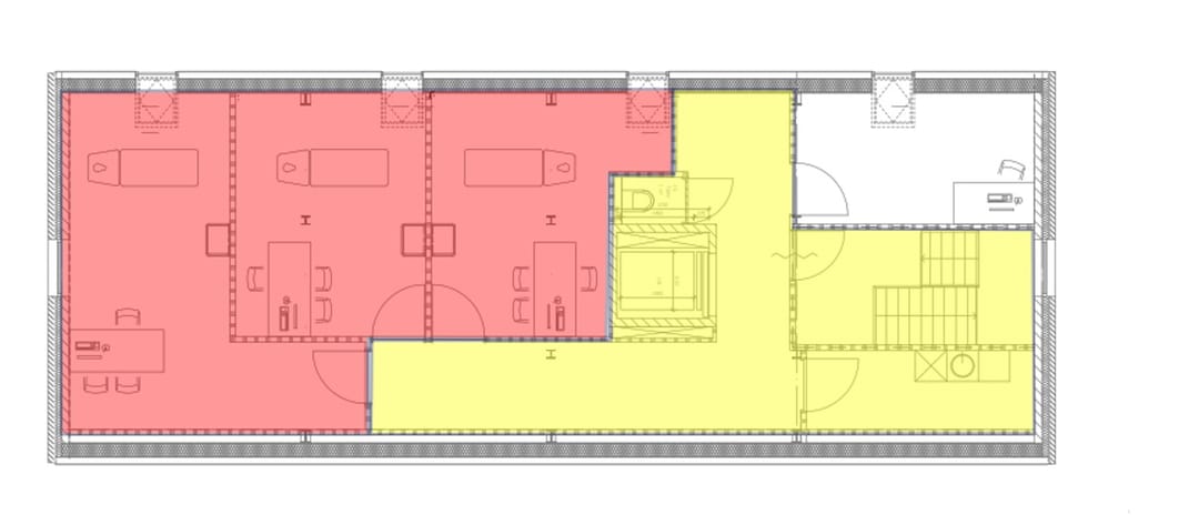 Te huur, praktijkruimte (drie behandelkamers) op de tweede verdieping, gelegen boven Healthclub Schuyt in de Schuytgraaf in Arnhem.