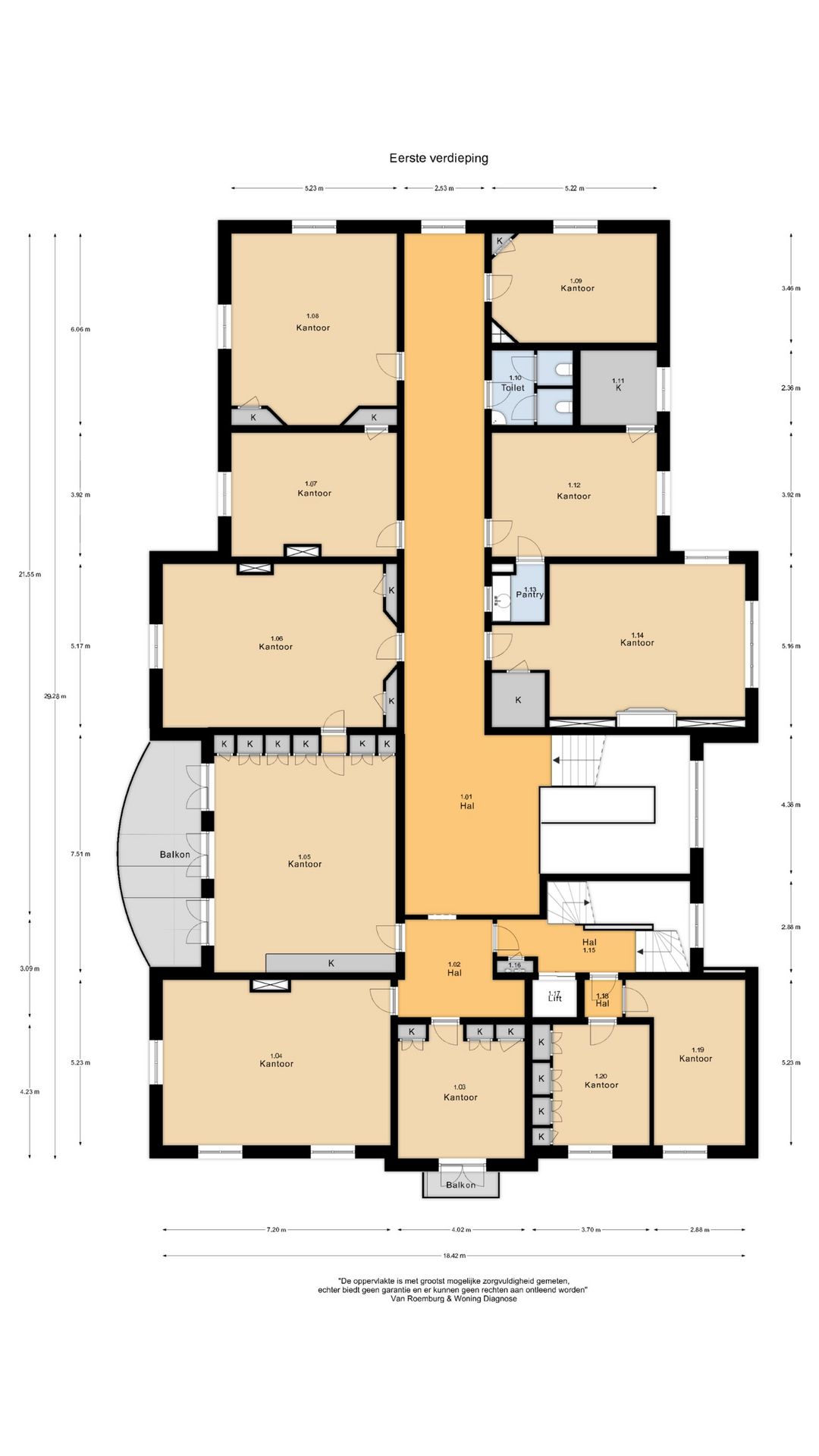 - Grotendeels voorzien van stucplafonds met ornamenten en deels voorzien van systeemplafonds met verlichtingsarmaturen;