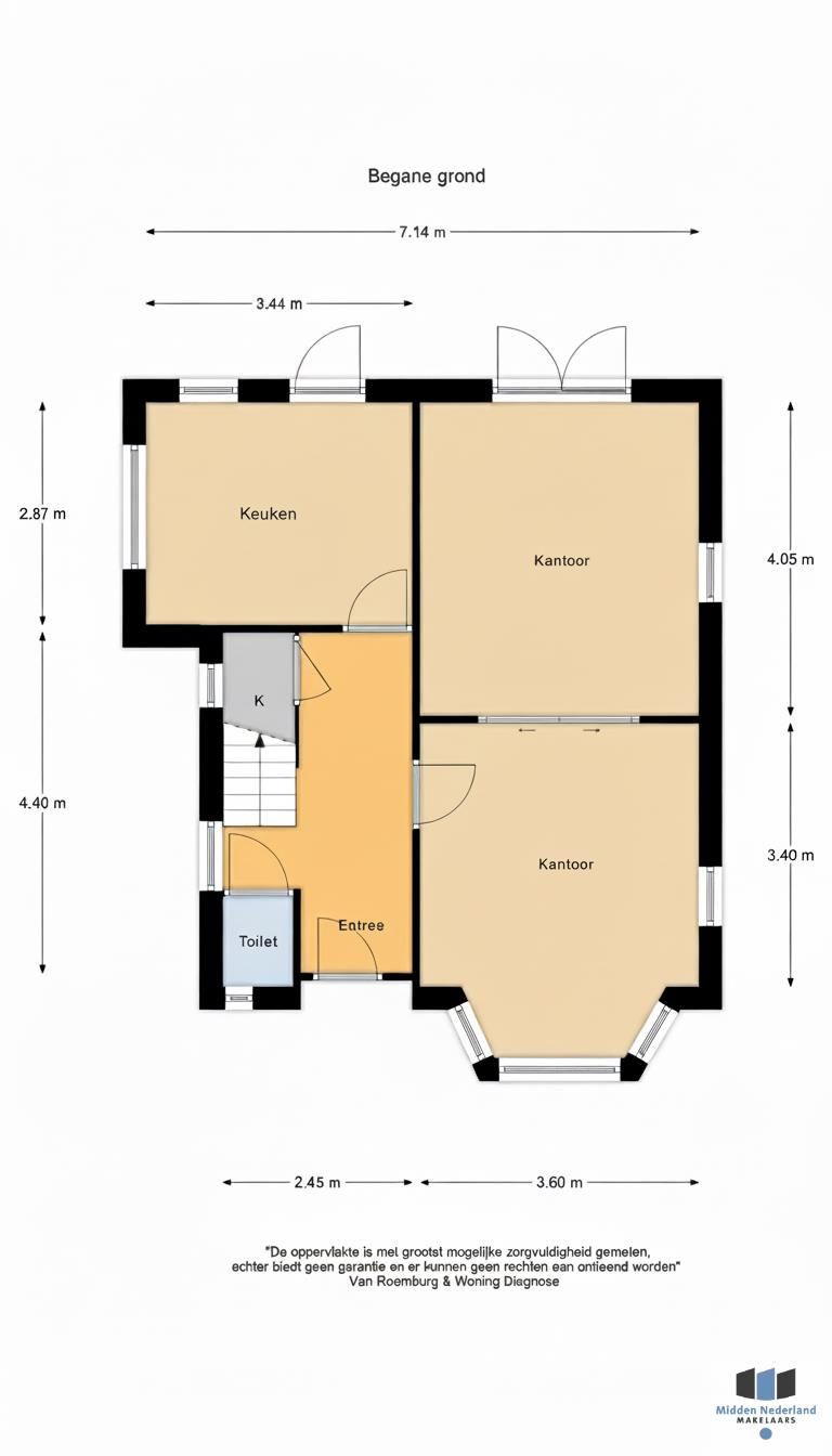 werken. De ruimten bevinden zich op de begane grond (circa 55 m²) en op de eerste verdieping (circa 45m²). Het pand bestaat uit meerdere kantoor-/ spreekkamers, die voorzien zijn van voldoende daglicht en is onder andere v.v. toiletvoorziening, pantry en verwarming door middel van radiatoren. Tevens beschikt het pand over een buitenterras met berging.