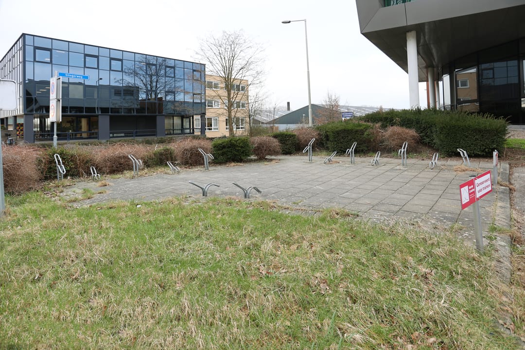 Parkeren op eigen terrein. Ongeveer 24-30 parkeerplekken gedeeld met 3 gereserveerde plekken.