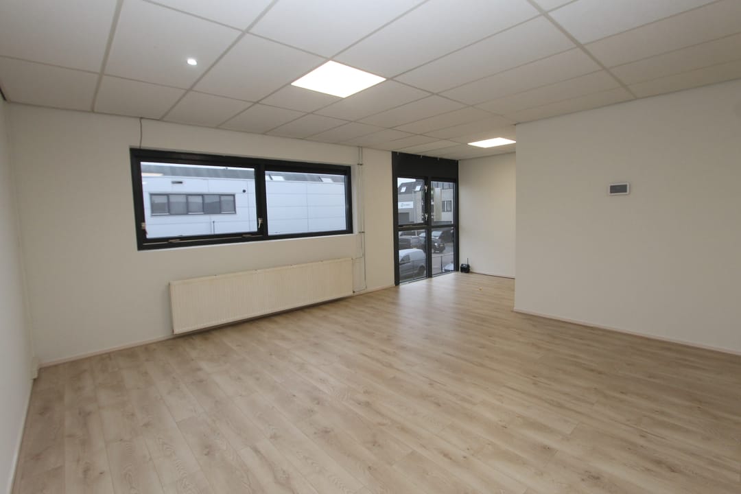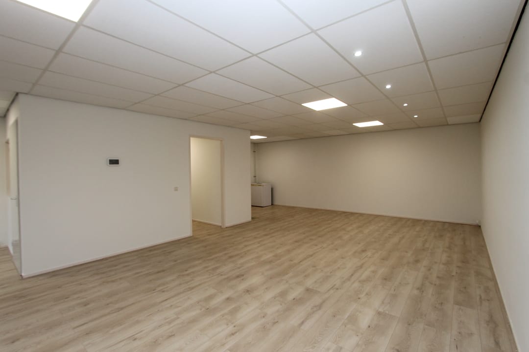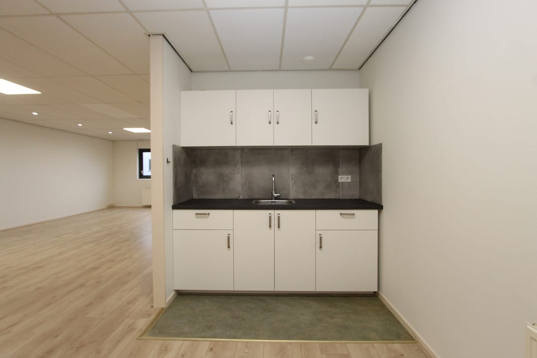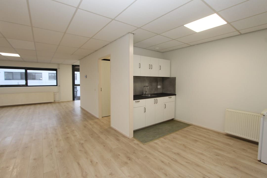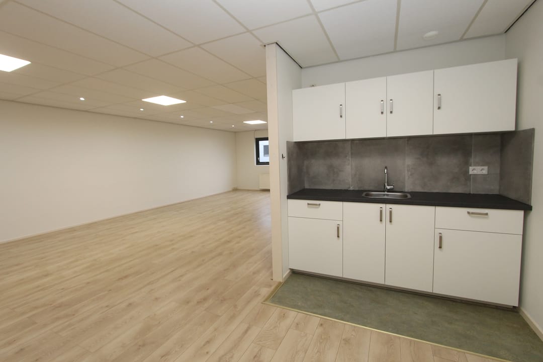 De comfortabele kantoorruimte is voorzien van een pantry met een moderne keuken en een koelkast. Tevens beschikt de ruimte over een douche. Het geheel is afgewerkt met een systeemplafond met TL-verlichting, laminaatvloer en verwarming (d.m.v. een gasgestookte Cv-ketel met radiatoren). De kantoorruimte heeft op de begane grond een eigen entree met een toilet en de trapopgang naar de eerste verdieping.