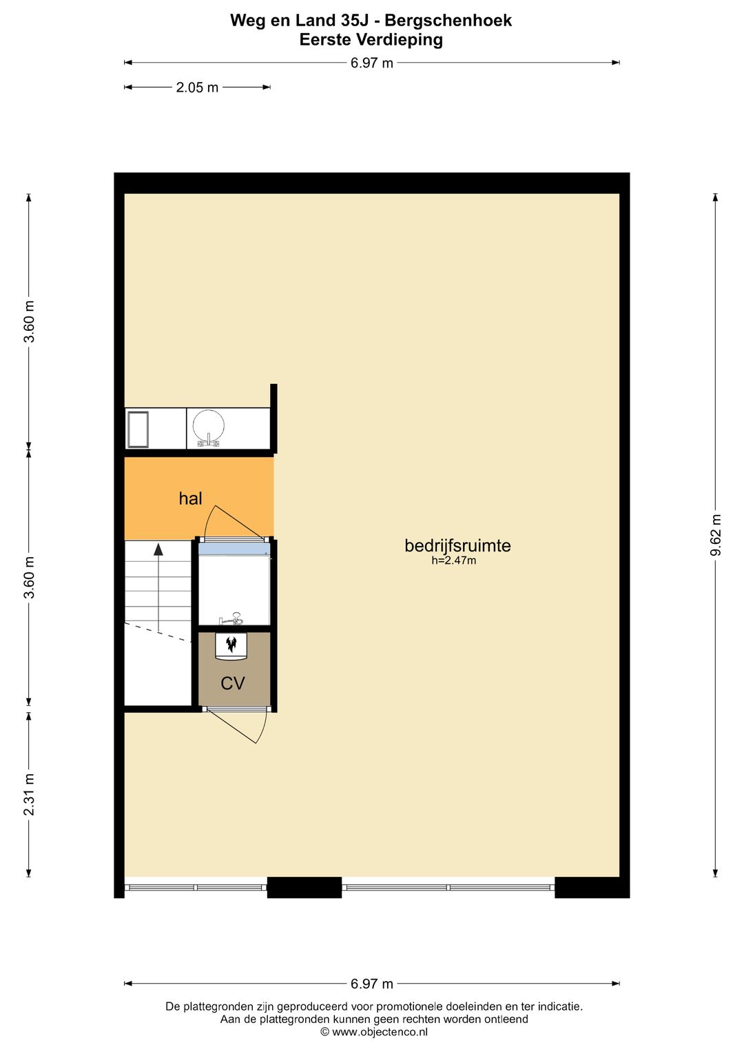 Representatieve kantoorruimte op de eerste verdieping van een bedrijfsruimte aan Weg en Land 35-J te Bergschenhoek.
