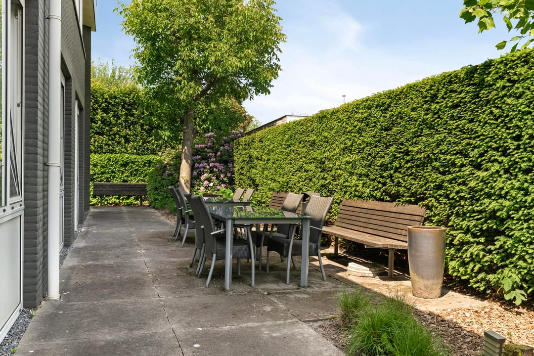 • Aangelegde tuin met diverse zitjes.