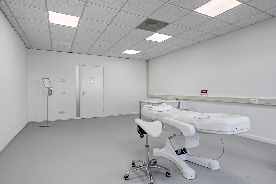 The building is traditionally constructed with insulated cavity brick walls, partly curtain wall, concrete floors, and an insulated concrete roof with bituminous roofing. The property was last used as a practice building for minor medical procedures and partly for health-improving dietary advice combined with sports.