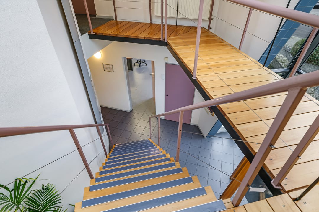 De kantoorruimten zijn toegankelijk via de gezamenlijke entree aan de voorzijde van het gebouw, waar zich tevens een receptie bevindt. De eerste verdieping is bereikbaar via de trap.