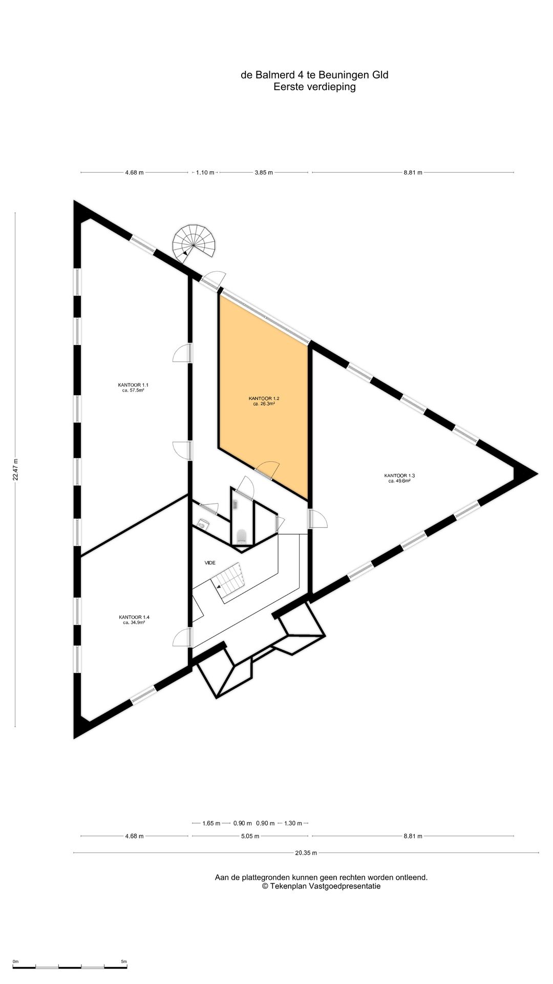 Kantoor begane grond: unit 0.2 betreft ca. 32,6 m² en unit 0.3 betreft ca. 61 m²